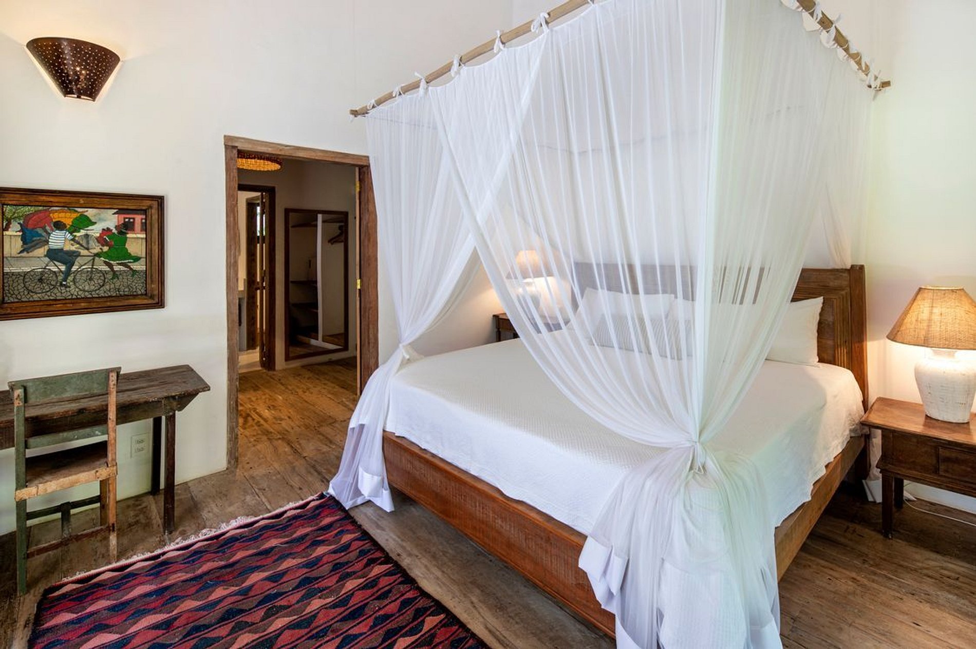 Esta residencia combina encanto rústico con sofisticación. En el extenso jardín se destacan la gran piscina y una cancha privada de vóley de playa. La amplia terraza ofrece sofás, hamacas y conecta las áreas comunes con las habitaciones. En el exterior, una zona de comedor equipada con horno de leña y barbacoa permite disfrutar de momentos inolvidables al aire libre.