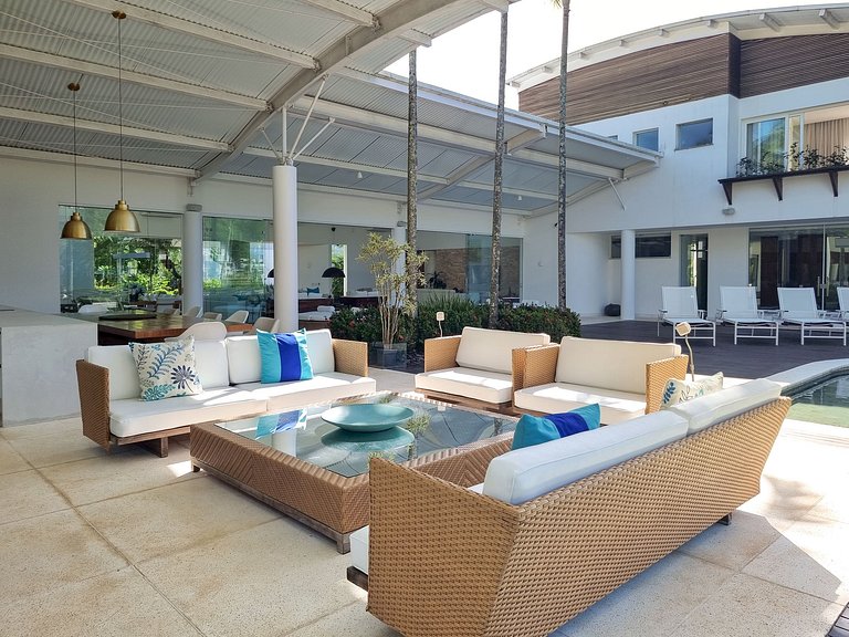 Esta hermosa mansión está ubicada en el condominio más lujoso de Mangaratiba, Portobello. Tiene un muelle privado que desemboca en la bahía de Mangaratiba, permitiendo fondear motos de agua, lanchas rápidas y yates.