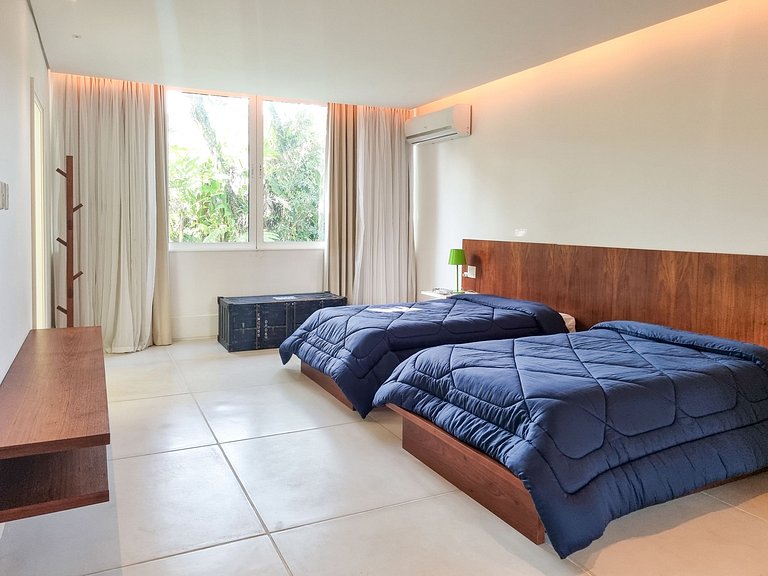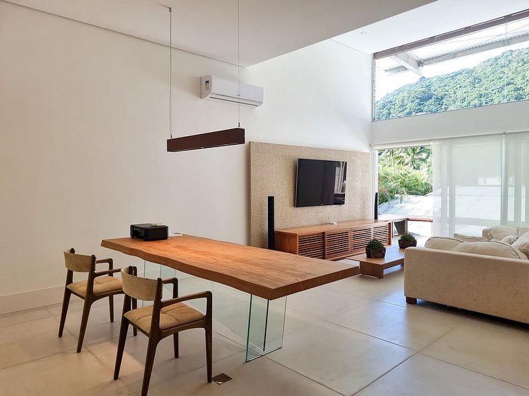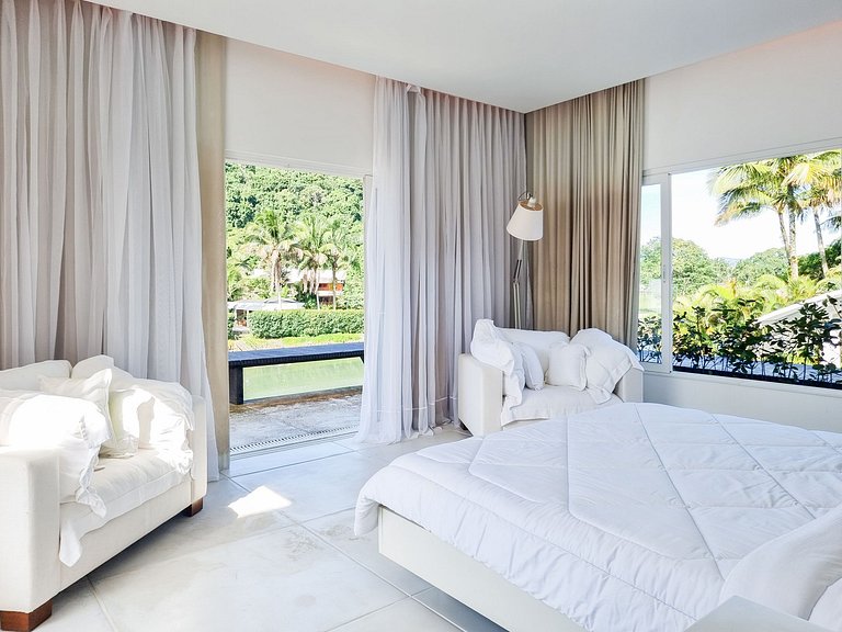 La villa cuenta con una cómoda sala de estar con sistema de sonido, mesa de comedor y grandes puertas de vidrio, que brindan una agradable vista a la piscina y al muelle; Con 7 suites con aire acondicionado, este paraíso tiene capacidad para 16 personas y ofrece una hermosa vista de la región en todas las habitaciones.