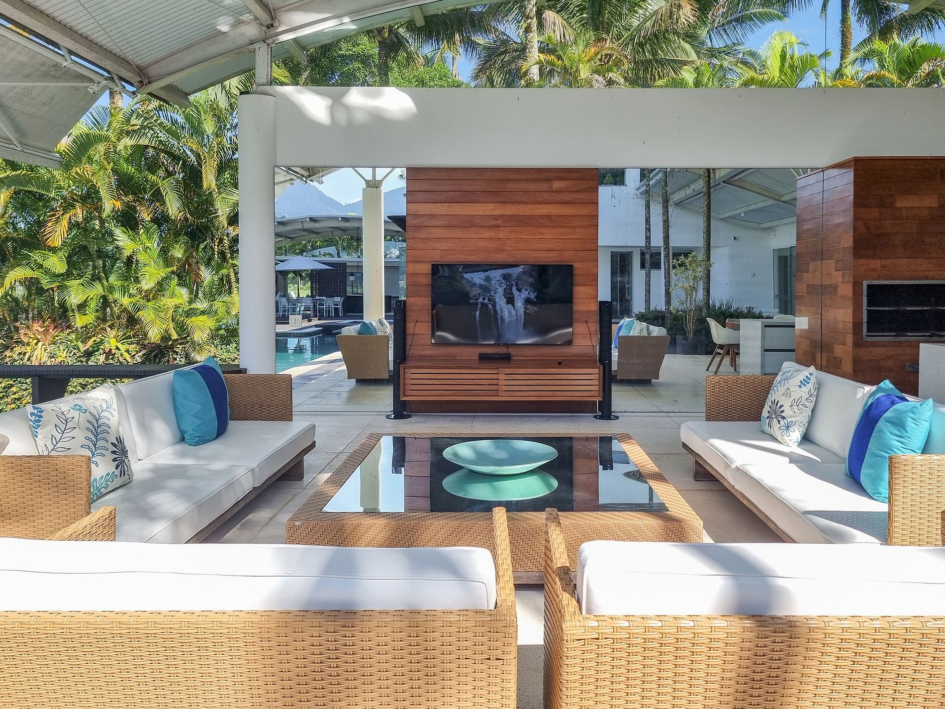 Esta hermosa mansión está ubicada en el condominio más lujoso de Mangaratiba, Portobello. Tiene un muelle privado que desemboca en la bahía de Mangaratiba, permitiendo fondear motos de agua, lanchas rápidas y yates.