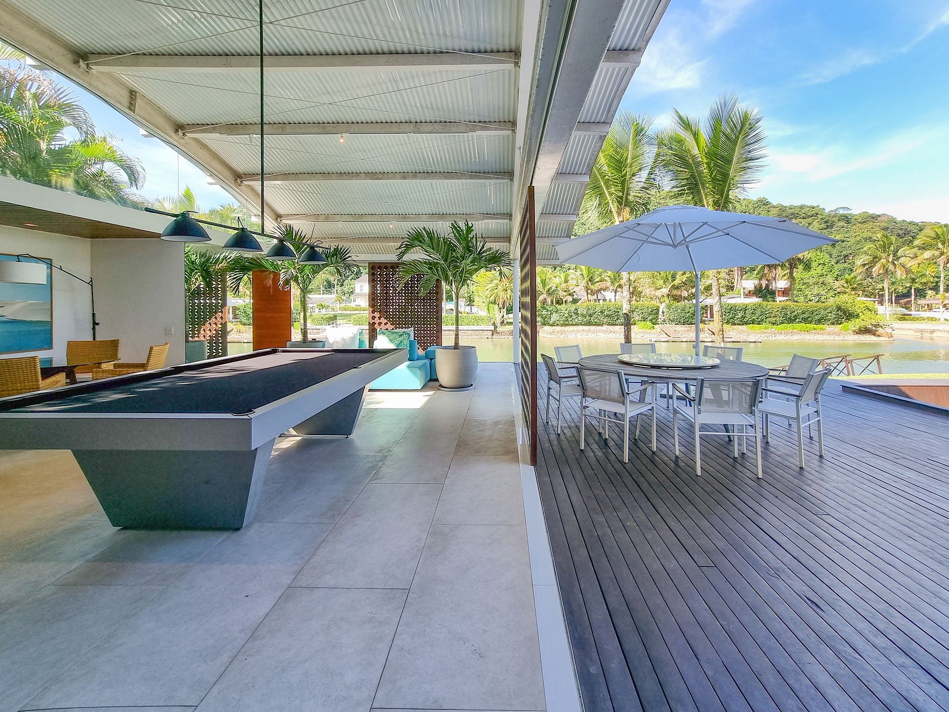 Esta hermosa mansión está ubicada en el condominio más lujoso de Mangaratiba, Portobello. Tiene un muelle privado que desemboca en la bahía de Mangaratiba, permitiendo fondear motos de agua, lanchas rápidas y yates.