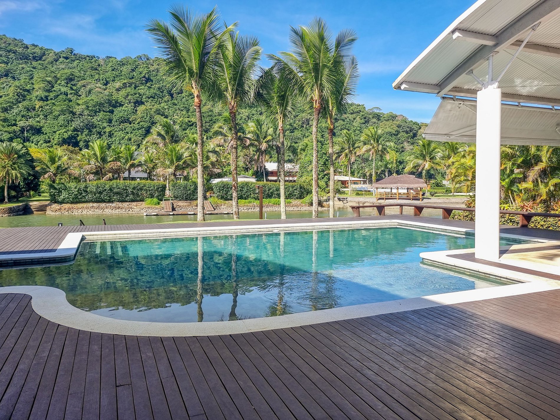 Esta hermosa mansión está ubicada en el condominio más lujoso de Mangaratiba, Portobello. Tiene un muelle privado que desemboca en la bahía de Mangaratiba, permitiendo fondear motos de agua, lanchas rápidas y yates.
