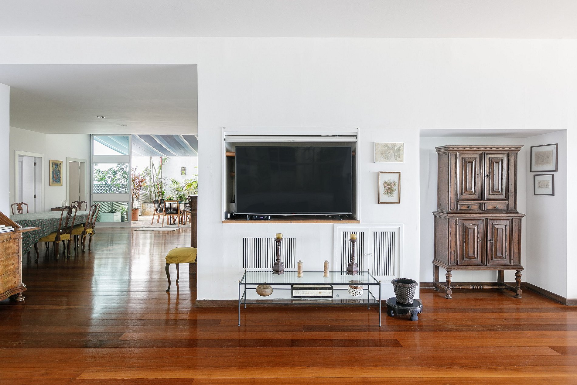 Este penthouse de 900 metros cuadrados lineales, que se encuentra frente a la playa de Ipanema, ofrece 4 dormitorios, 2 suites y 3 balcones. Te dejará sin aliento el patio frente a la playa, que ofrece un panorama de 180 grados desde Arpoador hasta Dois Irmos. Hay una sala de estar grande con dos habitaciones y un jardín de invierno detrás de la terraza delantera.