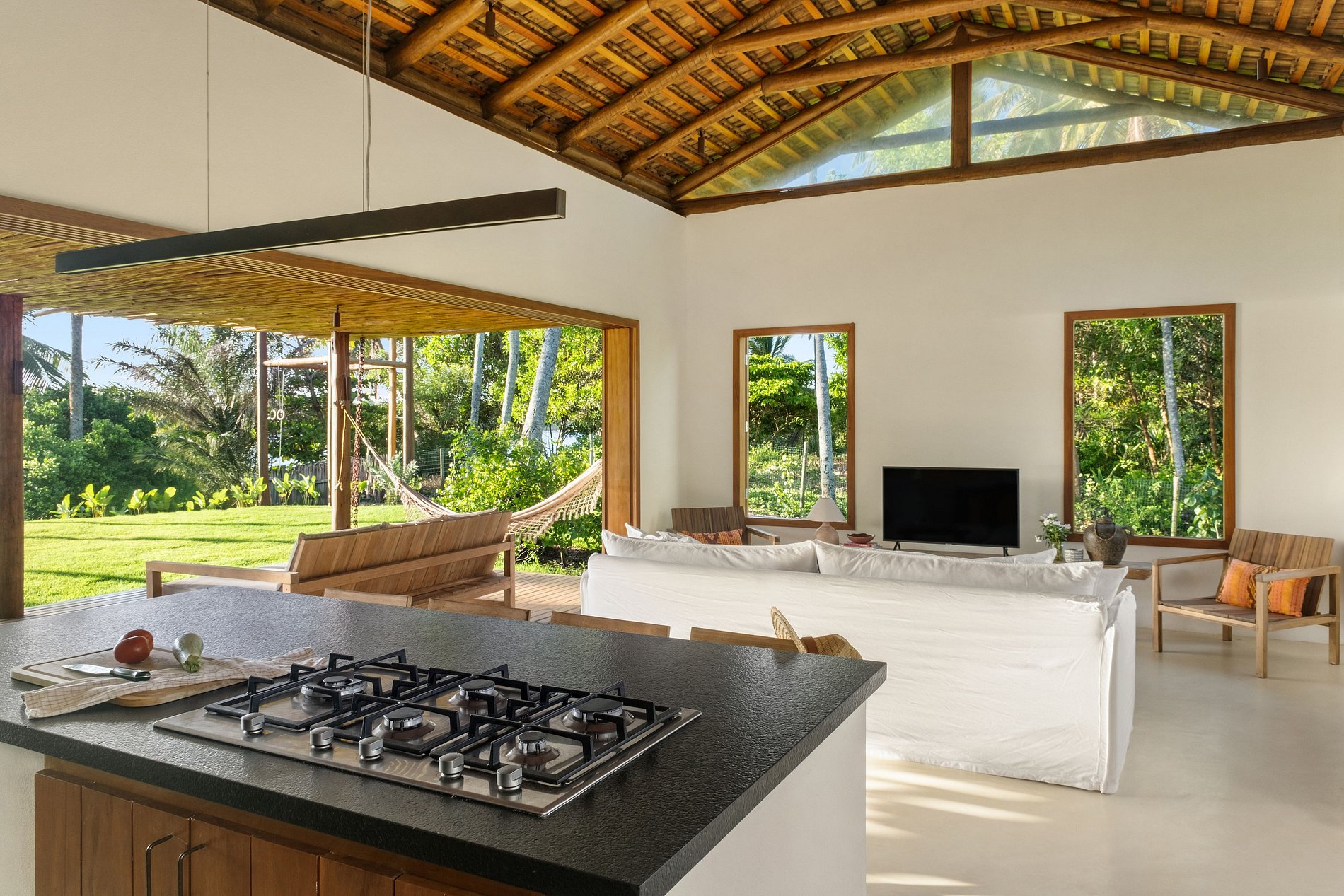 Ubicada en una región de naturaleza preservada, esta casa es más que un lugar para hospedarse: es una invitación a vivir el lujo simple de la vida en armonía con el medio ambiente. La cercanía a restaurantes locales y pequeñas tiendas garantiza comodidad, mientras que el aislamiento del bullicio nocturno la convierte en el refugio perfecto para relajarse.