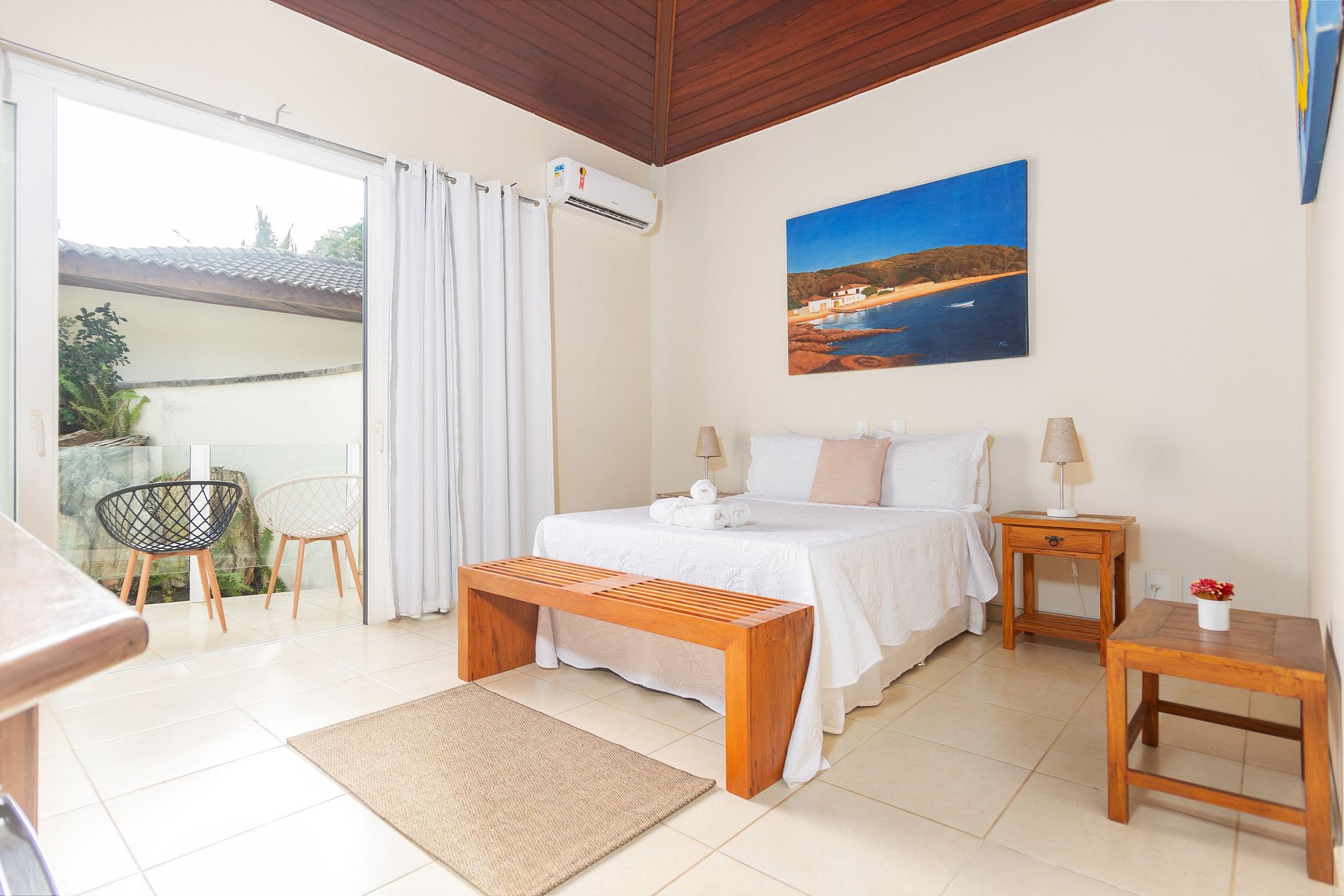 • Sala de estar: ampla e iluminada, com sofá confortável, TV e vistas deslumbrantes para a Praia da Ferradura.