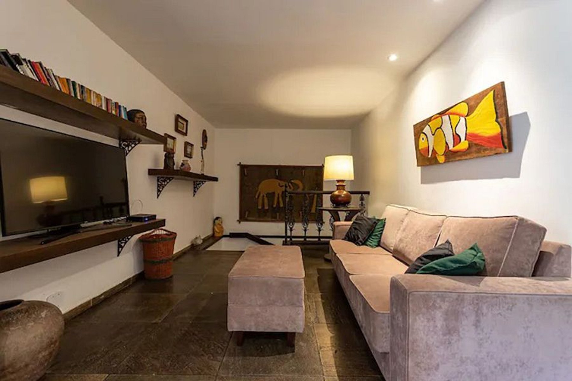 En el segundo piso, un jardín secreto brinda un oasis de tranquilidad, con un césped bien cuidado, una cabaña y una vista espectacular, lo que lo convierte en el lugar ideal para meditar, relajarse y disfrutar del amanecer o el atardecer en un ambiente privado y tranquilo. Con una capacidad de hasta 6 personas, esta propiedad de alquiler vacacional es la opción perfecta para cualquiera que busque una estadía excepcional en Copacabana, Río de Janeiro.