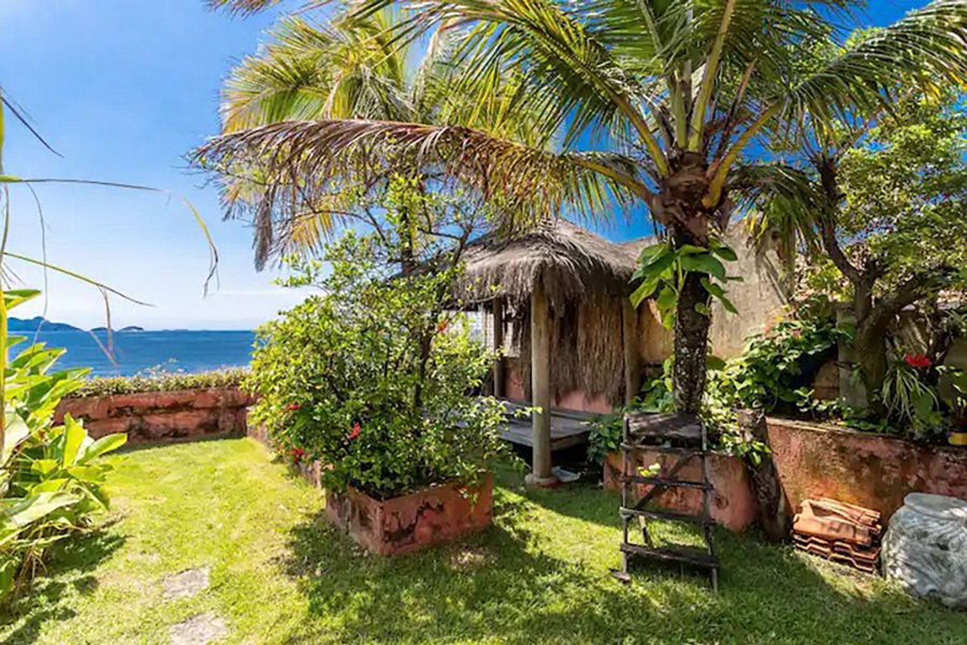 En el segundo piso, un jardín secreto brinda un oasis de tranquilidad, con un césped bien cuidado, una cabaña y una vista espectacular, lo que lo convierte en el lugar ideal para meditar, relajarse y disfrutar del amanecer o el atardecer en un ambiente privado y tranquilo. Con una capacidad de hasta 6 personas, esta propiedad de alquiler vacacional es la opción perfecta para cualquiera que busque una estadía excepcional en Copacabana, Río de Janeiro.