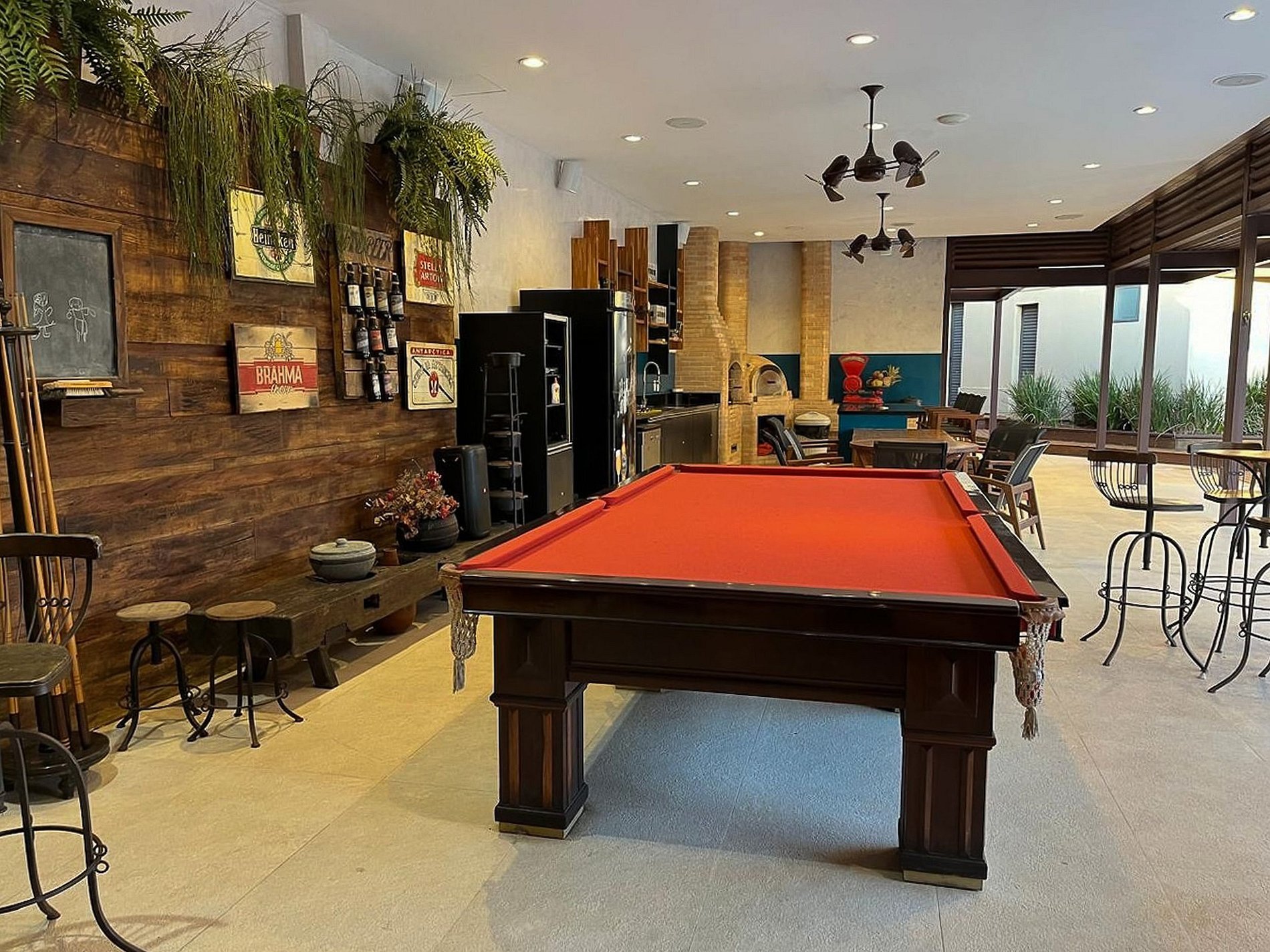 El espacio gourmet exterior ha sido diseñado para reunir a familiares y amigos en un ambiente sofisticado y acogedor, equipado con barbacoa, mesa de billar, ping-pong y una bodega rústica y exclusiva. Cada detalle de la mansión ha sido pensado para ofrecer una experiencia inolvidable en el corazón de Barra da Tijuca.