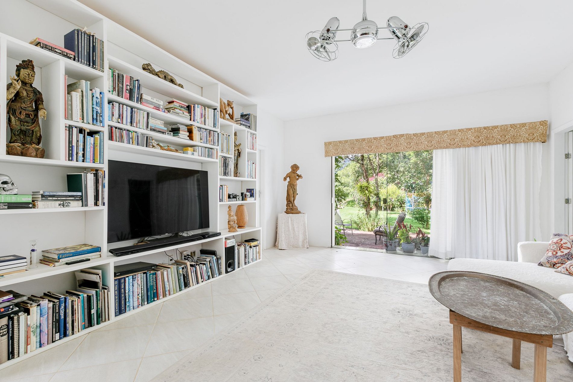 Rodeada del colorido cultivo de las más variadas especies de flores, se encuentra una hermosa casa con enormes ventanales de vidrio que permiten la entrada de luz natural y forma hermosos diseños y sombras en todas sus estancias. Desde las grandes puertas adornadas con cuadros pintados a mano, se extiende el salón y el comedor, completo con una mesa de billar, y conduce a la elegante y muy bien equipada cocina situada en la parte trasera. Los techos altos aportan una sensación de amplitud y confort. Todos los ambientes fueron delicadamente decorados con piezas encontradas en todo el mundo, suites sumamente espaciosas, camas súper cómodas, balcones con vista al verde en todas las habitaciones y todo lo necesario para promover, quienes se hospedan aquí, estaciones increíblemente tonificantes.