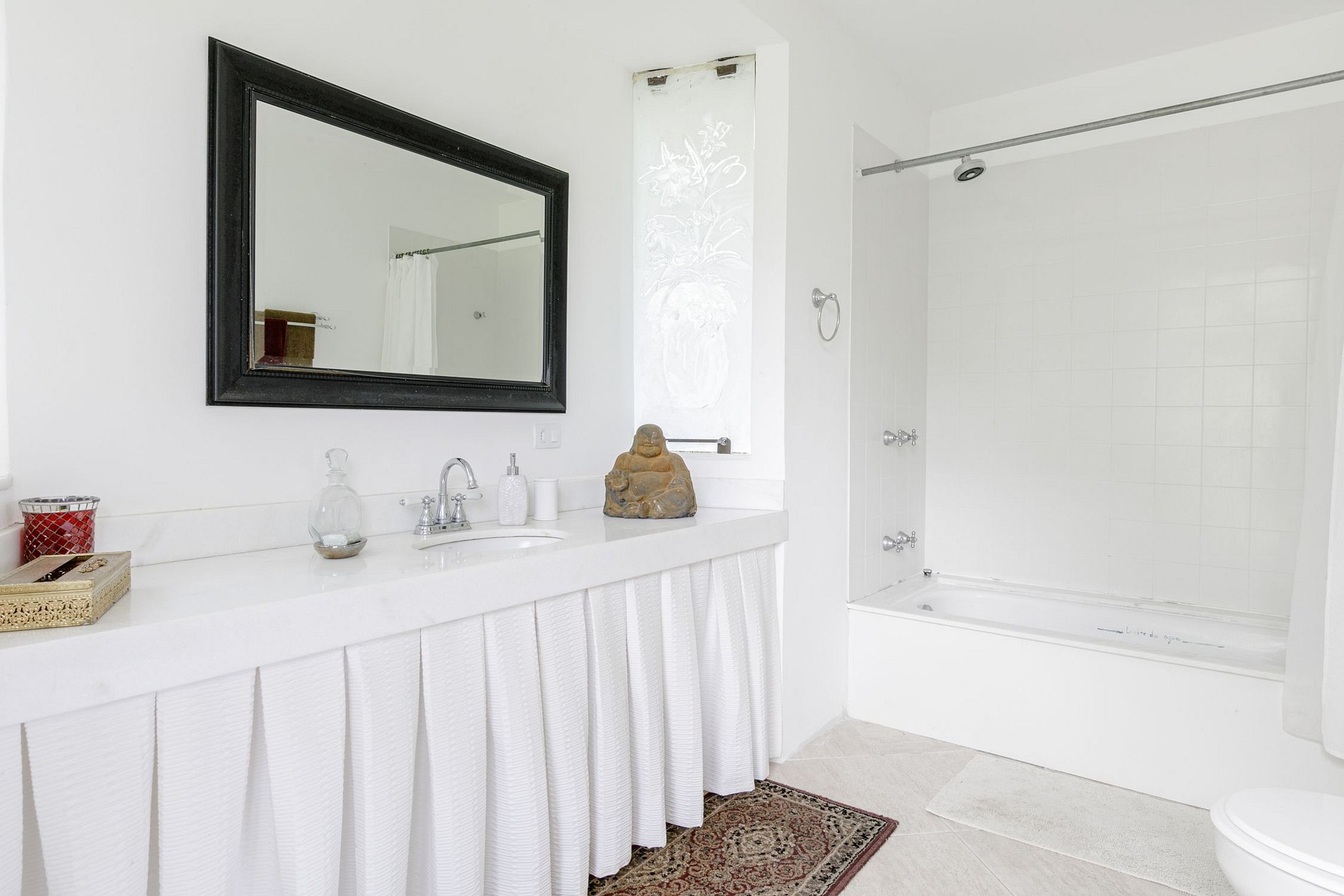Rodeada del colorido cultivo de las más variadas especies de flores, se encuentra una hermosa casa con enormes ventanales de vidrio que permiten la entrada de luz natural y forma hermosos diseños y sombras en todas sus estancias. Desde las grandes puertas adornadas con cuadros pintados a mano, se extiende el salón y el comedor, completo con una mesa de billar, y conduce a la elegante y muy bien equipada cocina situada en la parte trasera. Los techos altos aportan una sensación de amplitud y confort. Todos los ambientes fueron delicadamente decorados con piezas encontradas en todo el mundo, suites sumamente espaciosas, camas súper cómodas, balcones con vista al verde en todas las habitaciones y todo lo necesario para promover, quienes se hospedan aquí, estaciones increíblemente tonificantes.