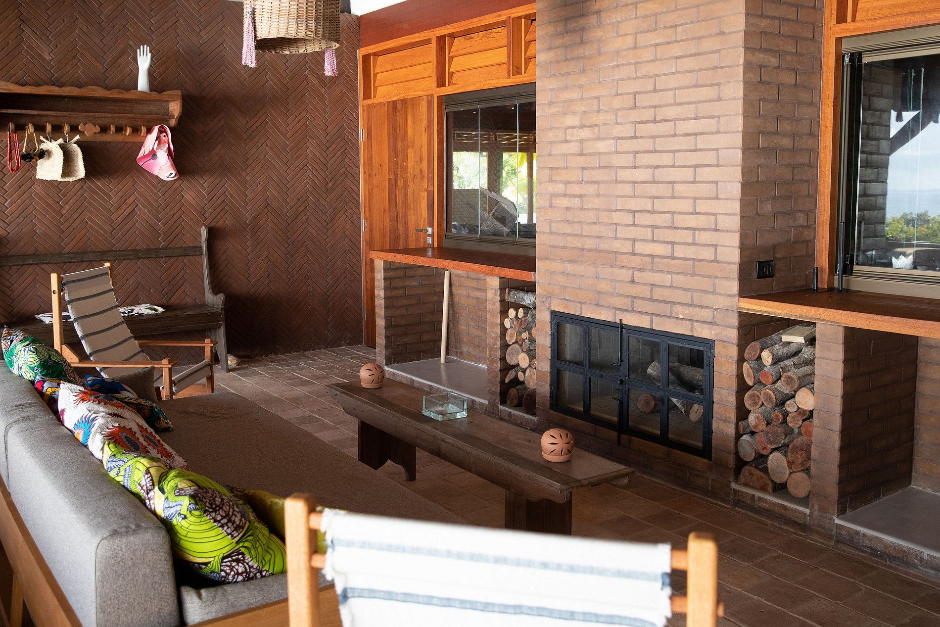 La arquitectura contemporánea fusiona materiales naturales como maderas nobles y durmientes fosilizados, en perfecta armonía entre elegancia y rusticidad. El diseño de interiores, firmado por una reconocida diseñadora brasileña, refleja una fusión única entre el estilo francés y brasileño. La decoración incluye piezas exclusivas adquiridas en viajes internacionales y mobiliario de diseño firmado.