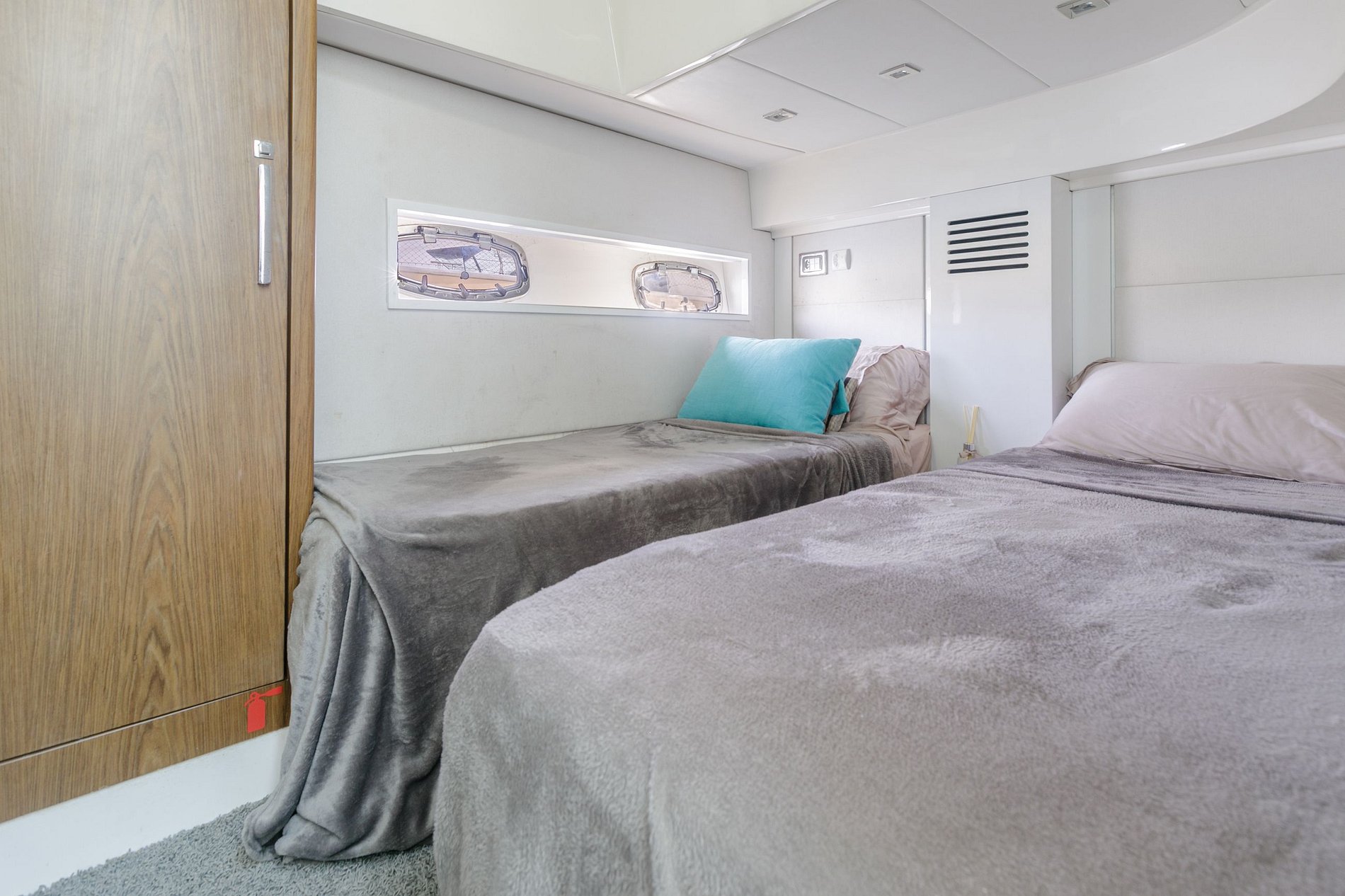 La sala de estar es espaciosa con dos cómodos sofás y hay armarios tanto en los dormitorios como en la sala de estar para guardar cosas cómodamente. La lancha rápida también está equipada con un generador de 20 kW, que proporciona energía independiente para todos los entornos.