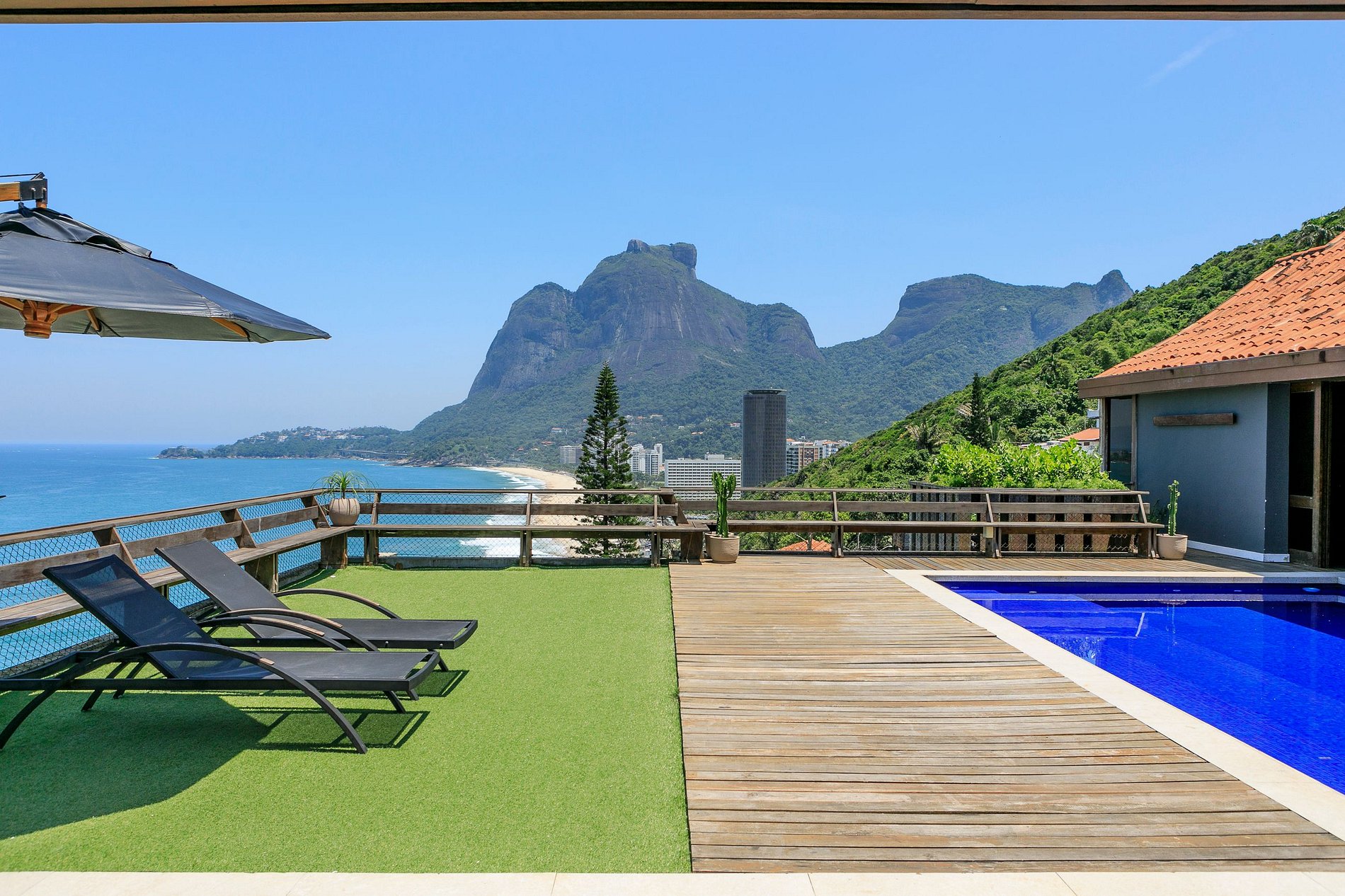 Descubra una opulenta mansión de cuatro pisos ubicada en un condominio de lujo a lo largo de la icónica Avenida Niemeyer de Río de Janeiro. Maravíllate ante las impresionantes vistas que se abren ante ti, mostrando el fascinante mar, la majestuosa Pedra da Gávea y las prístinas arenas de la playa de São Conrado.