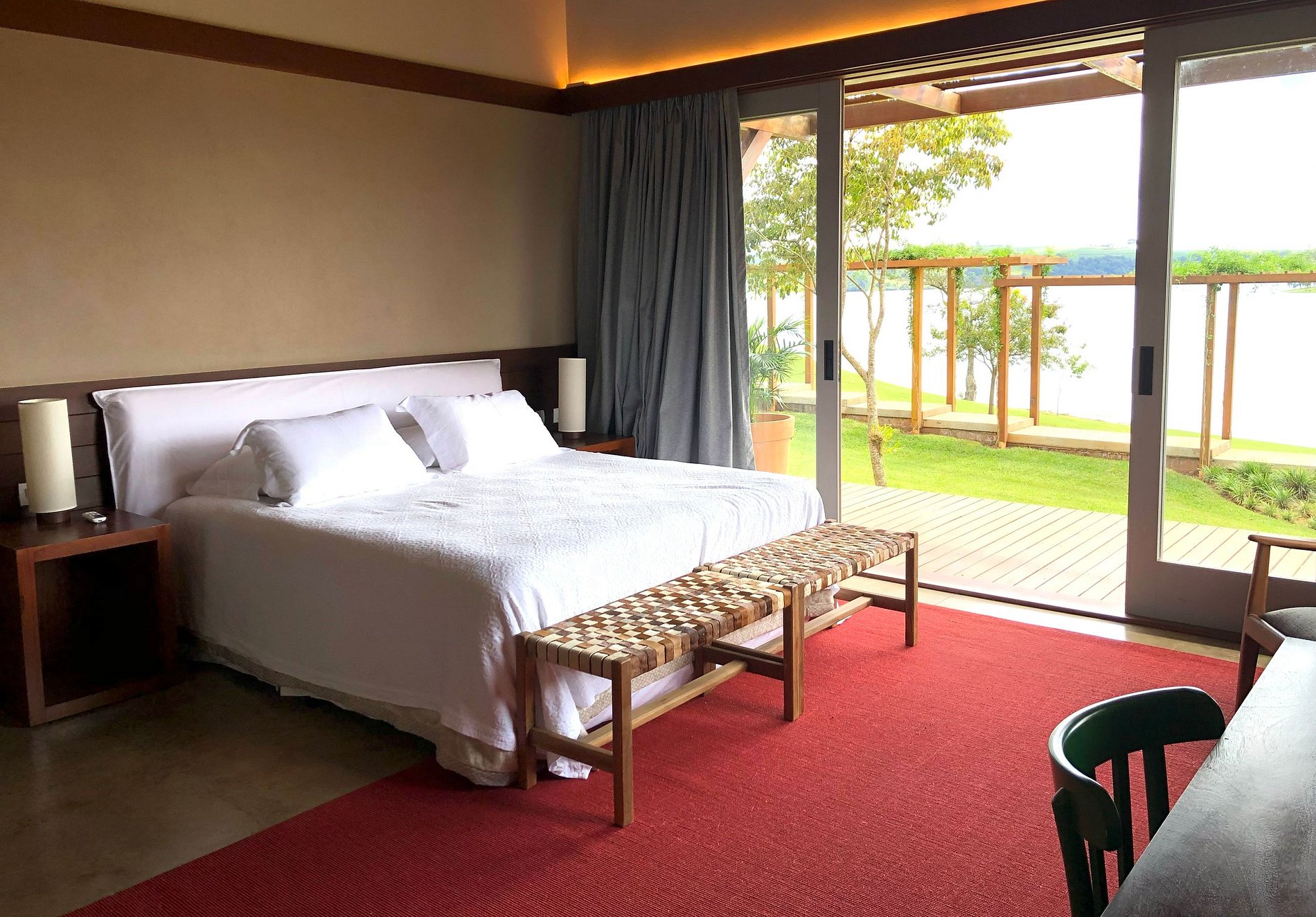 Deux charmantes villas au bord du réservoir de Jurumirim, à Itaí, à 300 km de São Paulo. Intégrant la Ferme historique et le Haras Buganville, ces propriétés familiales, conçues par Renato Tavolaro, allient bois nobles, ciment et verre, affichant une esthétique rustique-contemporaine.