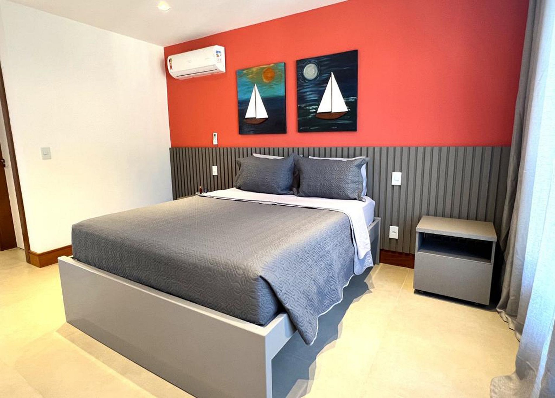 L'autre suite dispose d'un lit super king-size et d'un lit simple pliant en dessous.