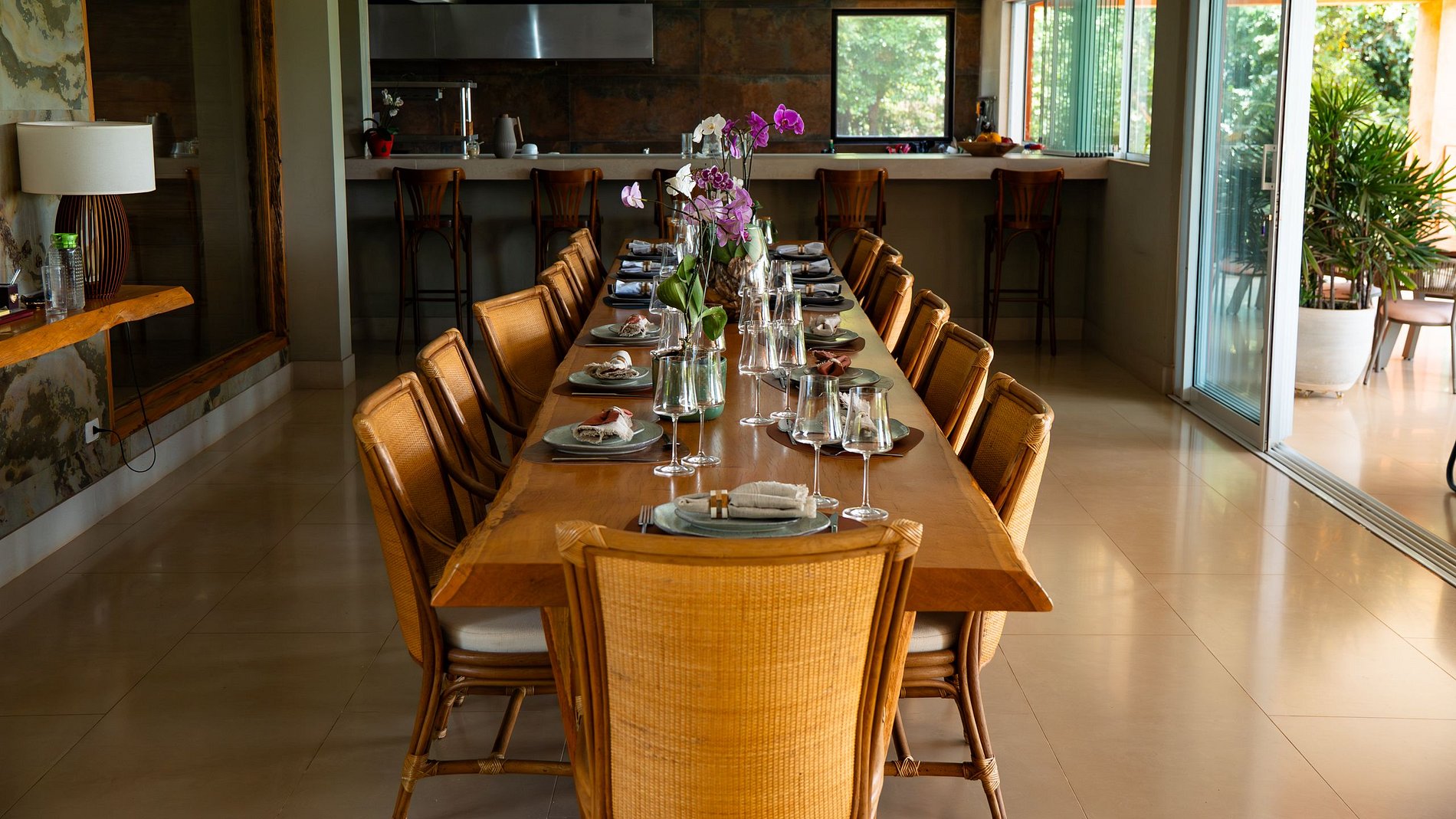 La cuisine professionnelle est conçue pour offrir un service haut de gamme et comprend un chef sur place, permettant d'adapter les menus aux préférences de chaque groupe. Ici, la gastronomie devient une partie intégrante du séjour, et non un simple service annexe.
