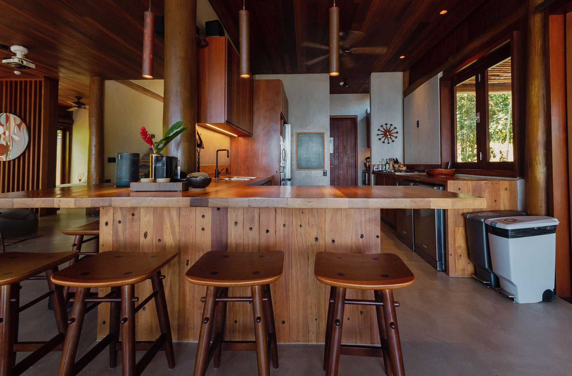 Ses six bungalows, entrelacés de terrasses en bois, se fondent dans la végétation environnante. La suite principale, majestueusement située sur la mezzanine, offre non seulement une vue imprenable sur l'océan infini, mais captive également les sens avec une atmosphère de tranquillité et de luxe. Chaque suite, soigneusement conçue pour garantir un maximum de confort et d'intimité, est un havre de sérénité et d'élégance.