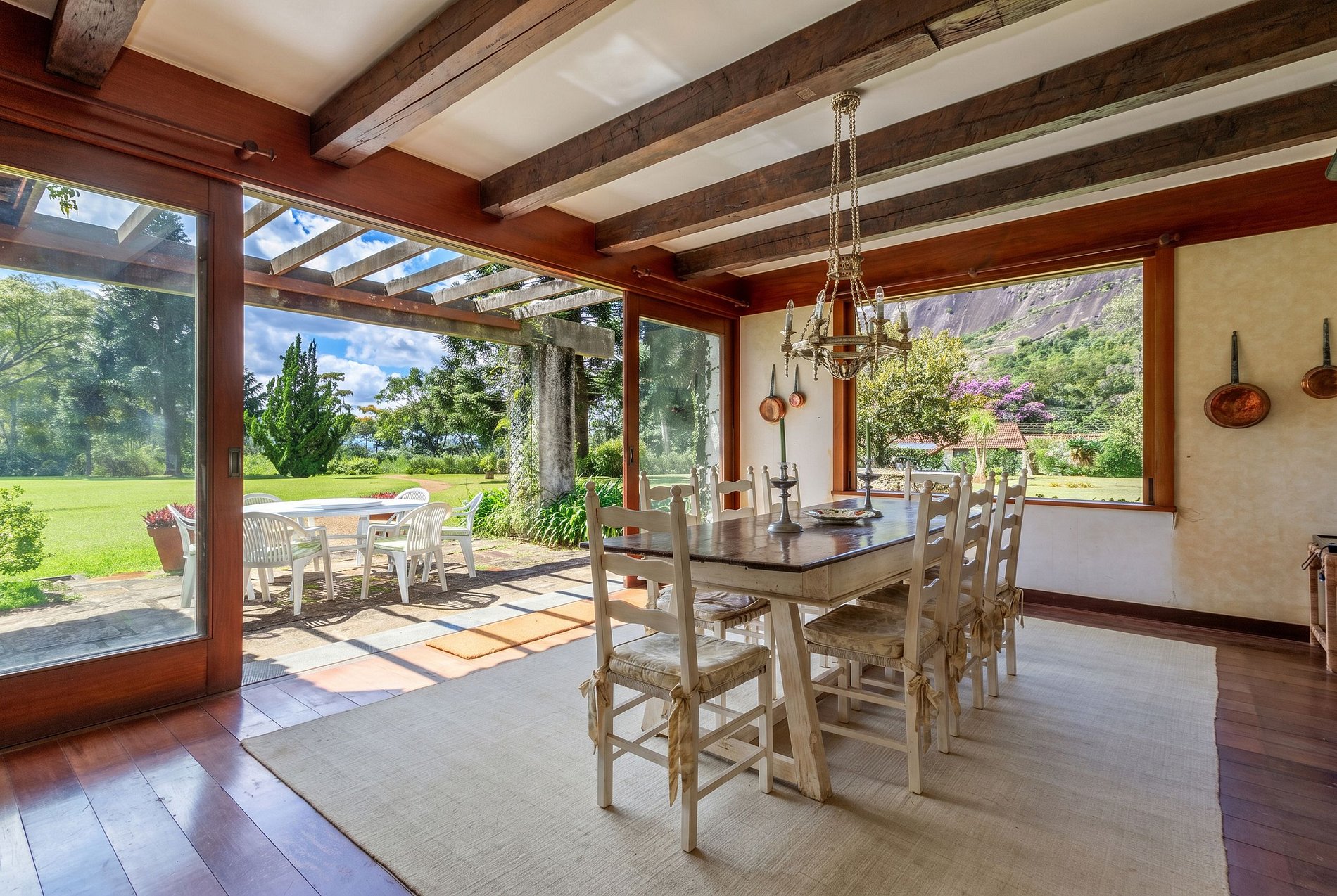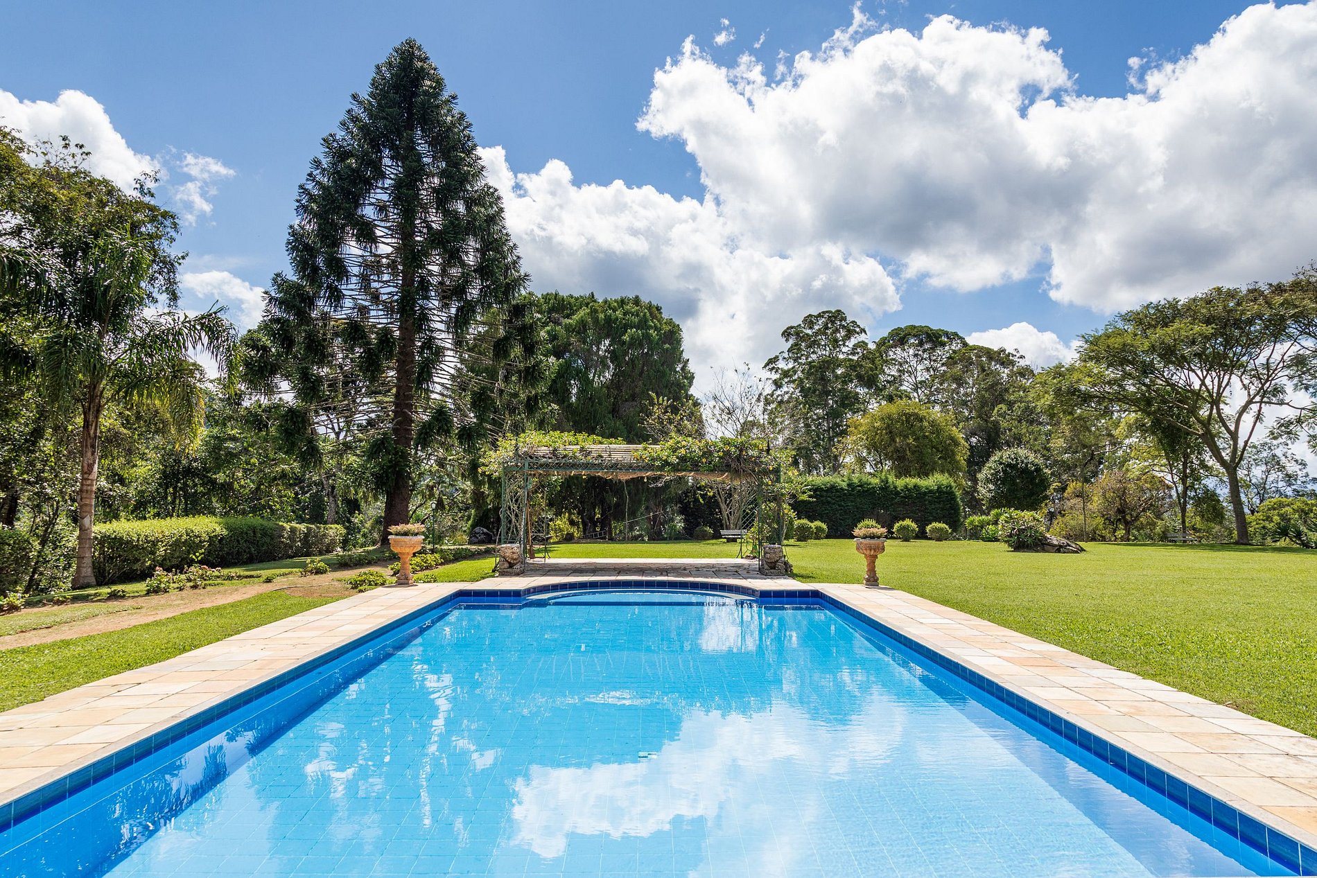 Venez découvrir cette magnifique maison avec une grande piscine et un vaste jardin, entourée de paysages superbes où l'air pur des montagnes de Rio de Janeiro offre un cadre parfait pour se détendre. Une destination idéale pour les amateurs de montagne, que ce soit pour explorer les sentiers ou simplement profiter de l'ambiance chaleureuse de Teresópolis.