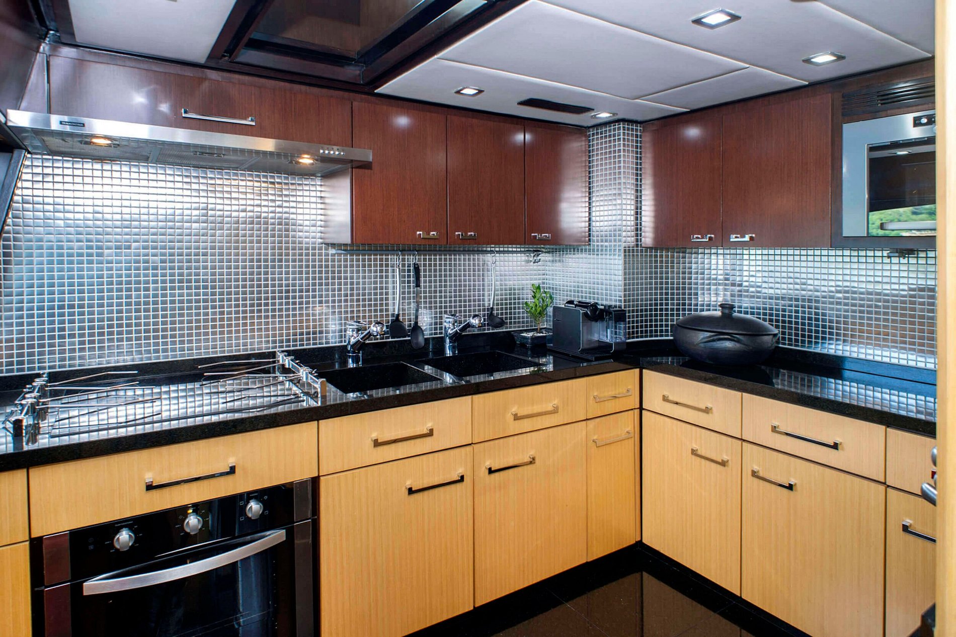 La partie intérieure se compose d'un salon TV, d'une cuisine, de cabines, d'un salon et d'une salle à manger. Le yacht peut accueillir 10 personnes dans 4 suites. Chacune de ses cabines dispose des mêmes commodités que celles auxquelles on peut s'attendre sur un magnifque yacht comme celui-ci.