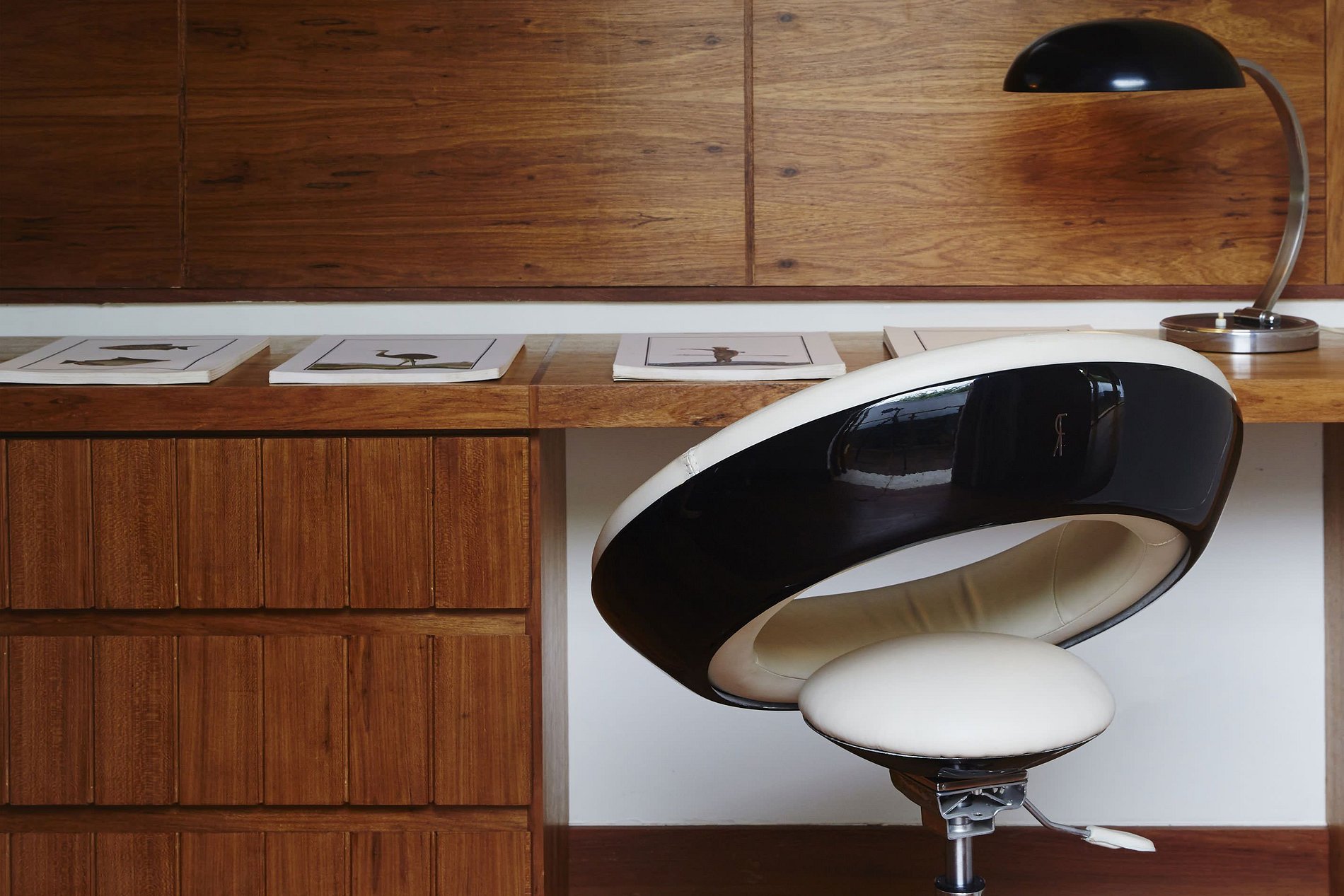 Le design de la maison est totalement unique. Avec ses grandes arches, le salon avec ses grandes baies vitrées, la cour voûtée de la pergola et ses portes en bois de six mètres de haut est devenu connu pour son style brutaliste moderniste qui mélangeait béton et bois noble. Dans la décoration, des détails qui font toute la différence comme des tissus faits à la main, des sièges en bambou et des coussins ont fait la part de la Thaïlande à l’Europe.