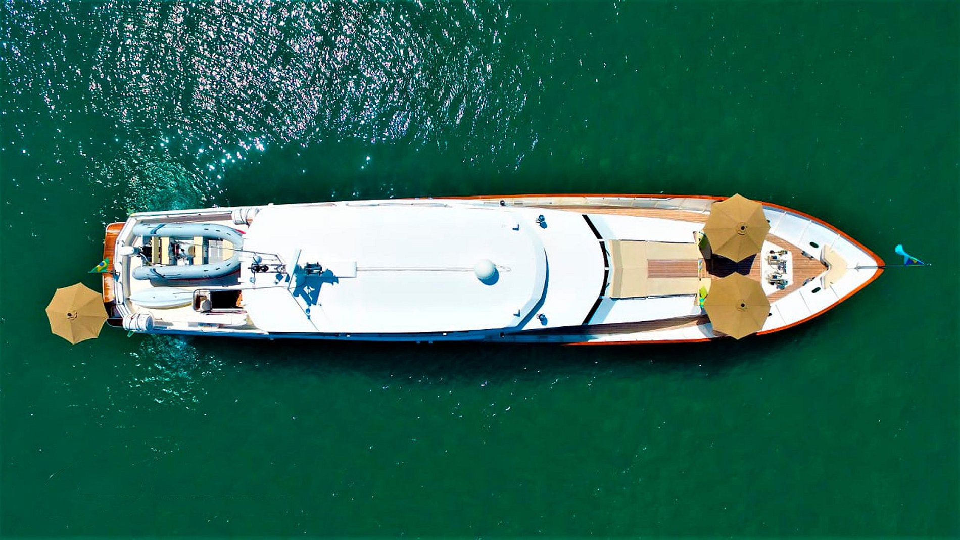 Ce bateau dispose de 5 cabines, 5 salles de bain, un salon, une salle TV, une salle à manger entièrement équipée, une buanderie, un jacuzzi, une baignoire, un barbecue, un bar, et bien plus encore.
