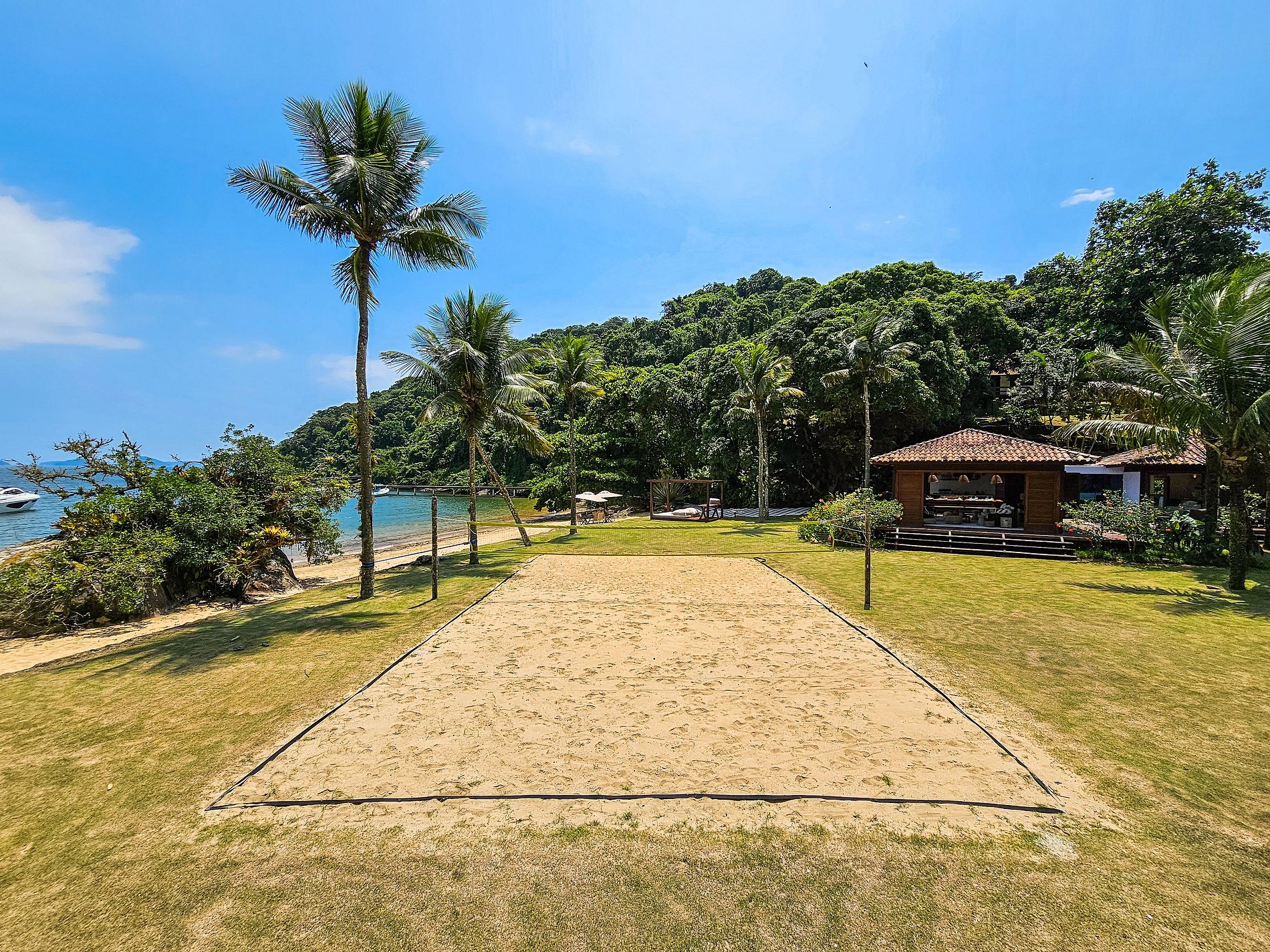 En entrant dans la jetée, nous pouvons déjà voir un charmant bungalow. Et peu à peu, nous explorons et découvrons toutes les perles que cette villa nous présente : un terrain de tennis et un autre de beach-volley, table de ping-pong, sauna à vapeur et une piscine chauffée.