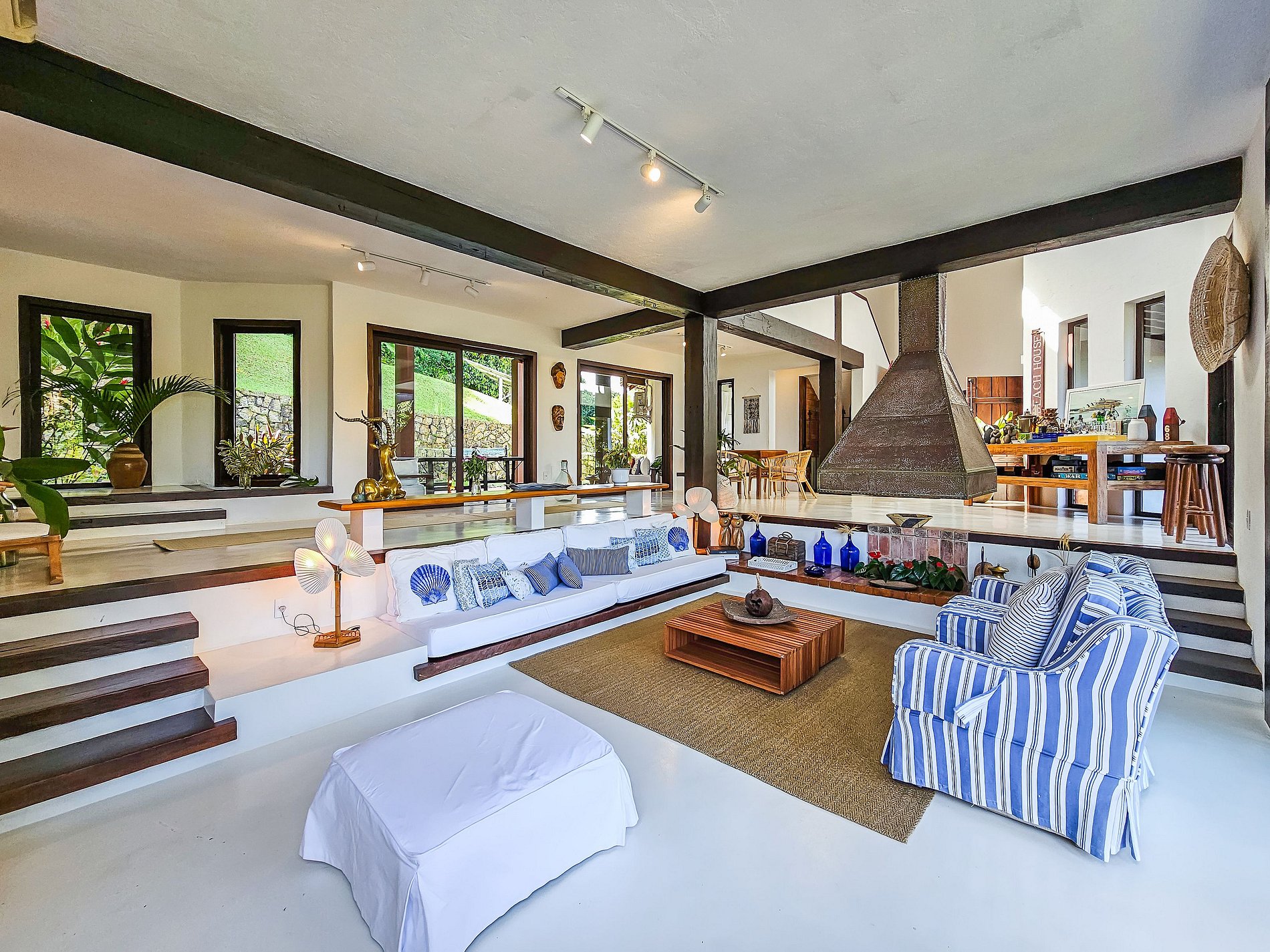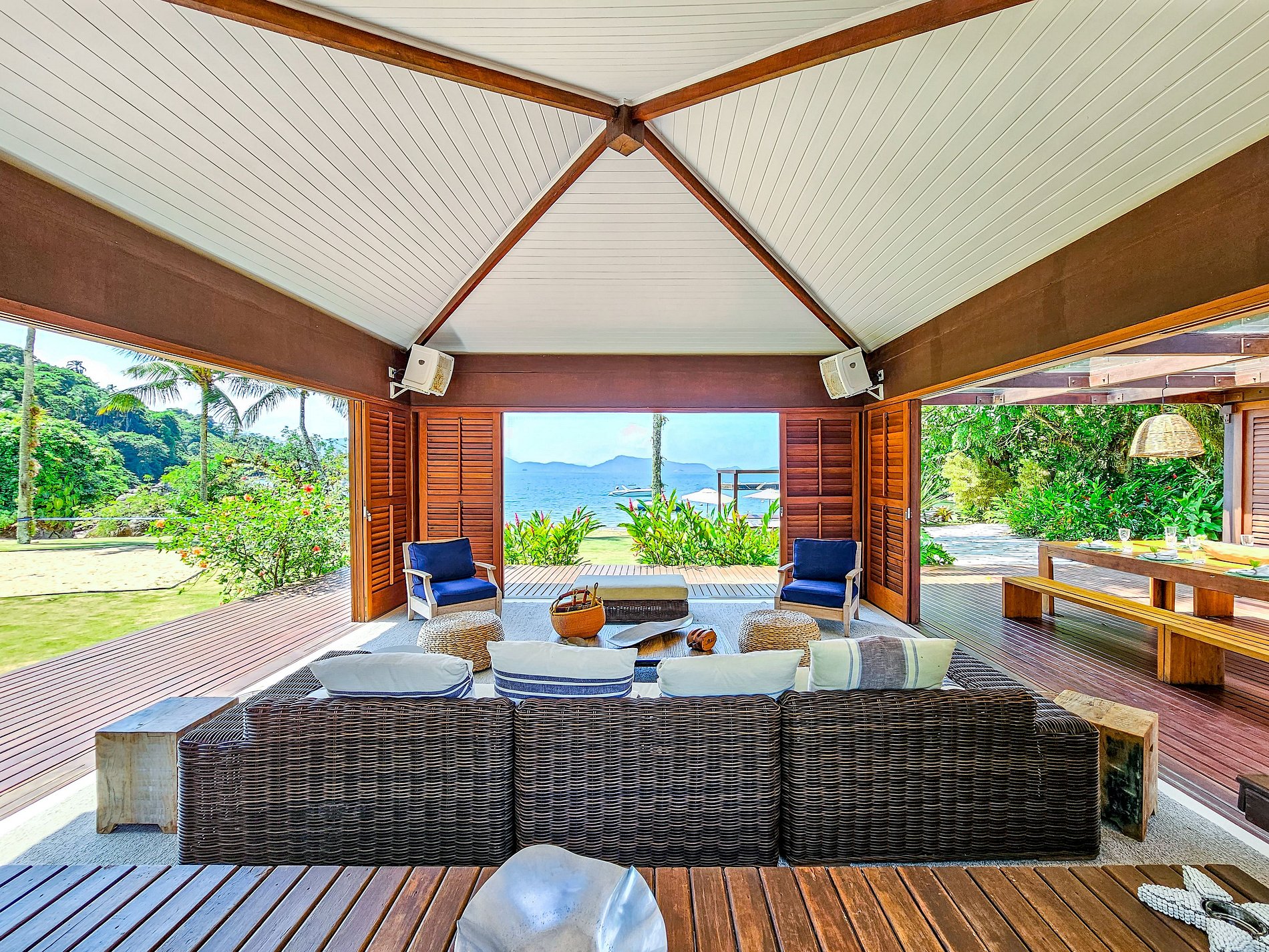 À quelques mètres de la plage, ce refuge confortable est situé sur Ilha Comprida, dans la baie d’Angra dos Reis et, à seulement cinq minutes en hors-bord de la marina de Bracuhy. Il peut accueillir confortablement jusqu’à 22 personnes. Avec un design discret et élégant, la maison principale comprend sept suites, toutes climatisées. La villa comprend deux autres suites.