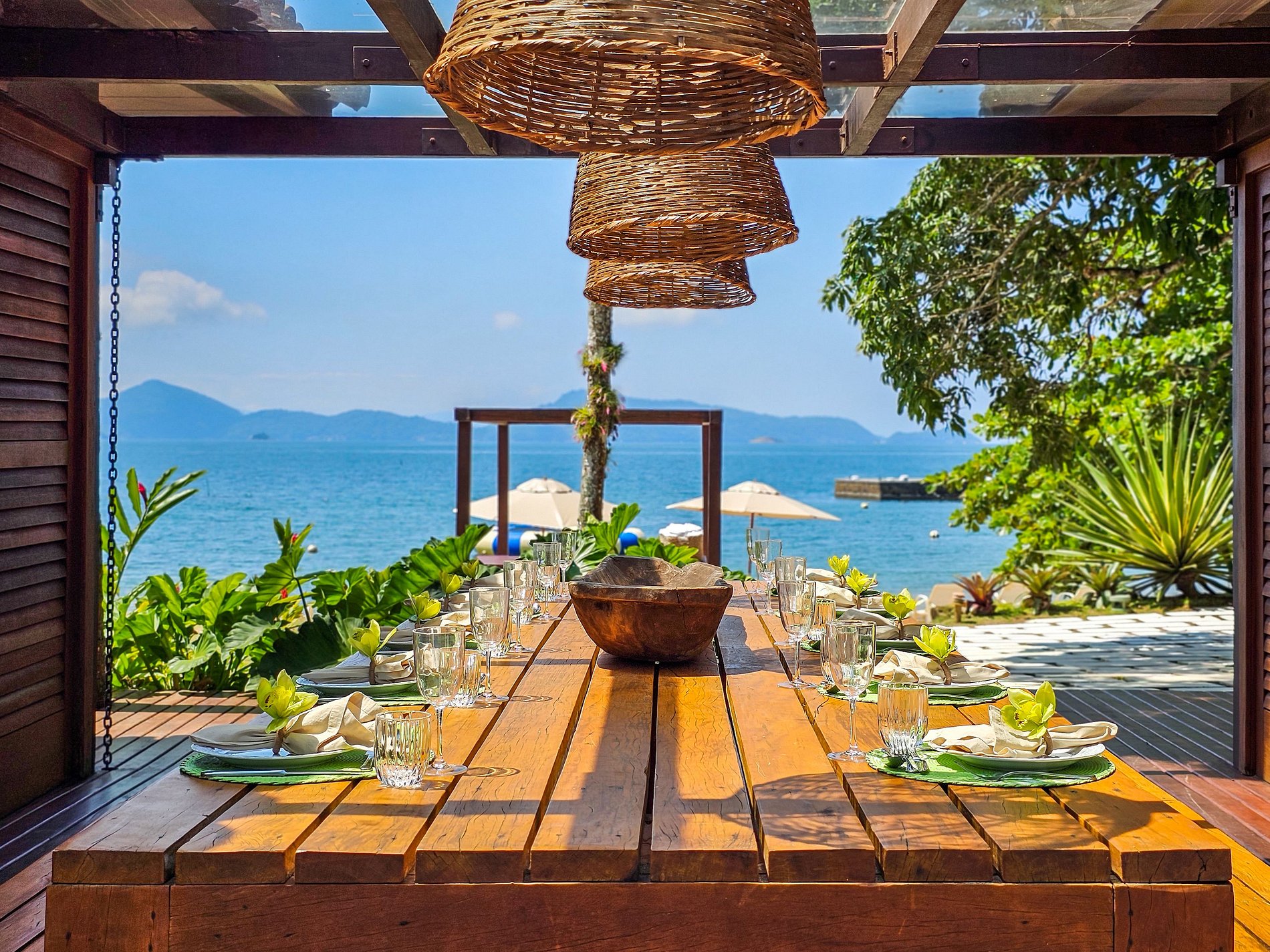 À quelques mètres de la plage, ce refuge confortable est situé sur Ilha Comprida, dans la baie d’Angra dos Reis et, à seulement cinq minutes en hors-bord de la marina de Bracuhy. Il peut accueillir confortablement jusqu’à 22 personnes. Avec un design discret et élégant, la maison principale comprend sept suites, toutes climatisées. La villa comprend deux autres suites.