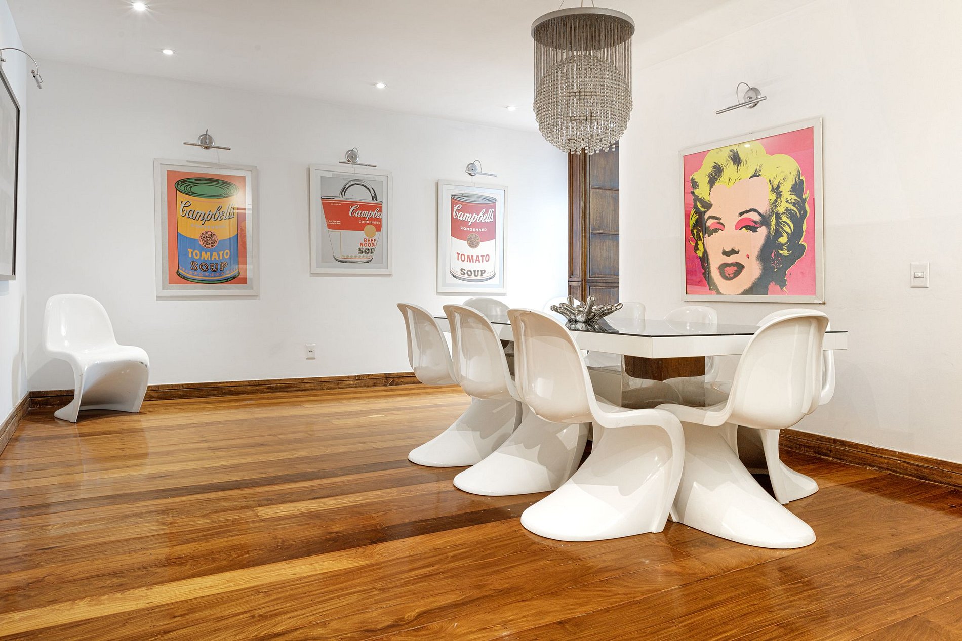 Mais ici, non seulement la nature brille, décorée par Philippe Starck et Le Corbusier, mais l’impressionnant penthouse de deux étages et 950m2 a ses murs recouverts d’œuvres d’art contemporaines et vibrantes.