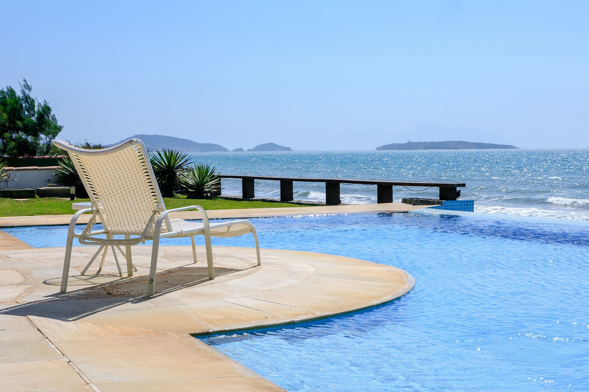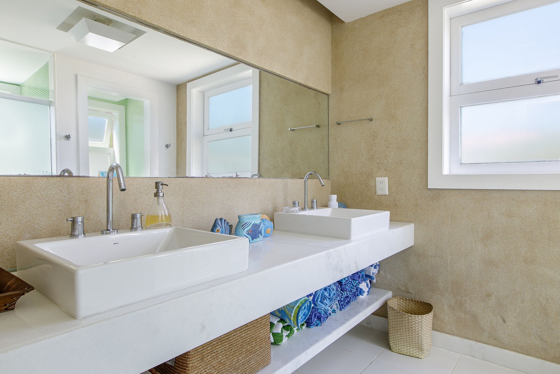 Cette propriété de 3 suites est située directement en bordure de Praia Rasa à Búzios, offrant une vue constante sur la mer et la commodité d'un accès direct à la plage. La maison, répartie sur deux étages, est conçue avec de grandes fenêtres qui permettent l'entrée de la lumière naturelle et de la ventilation, créant un environnement lumineux et aéré.