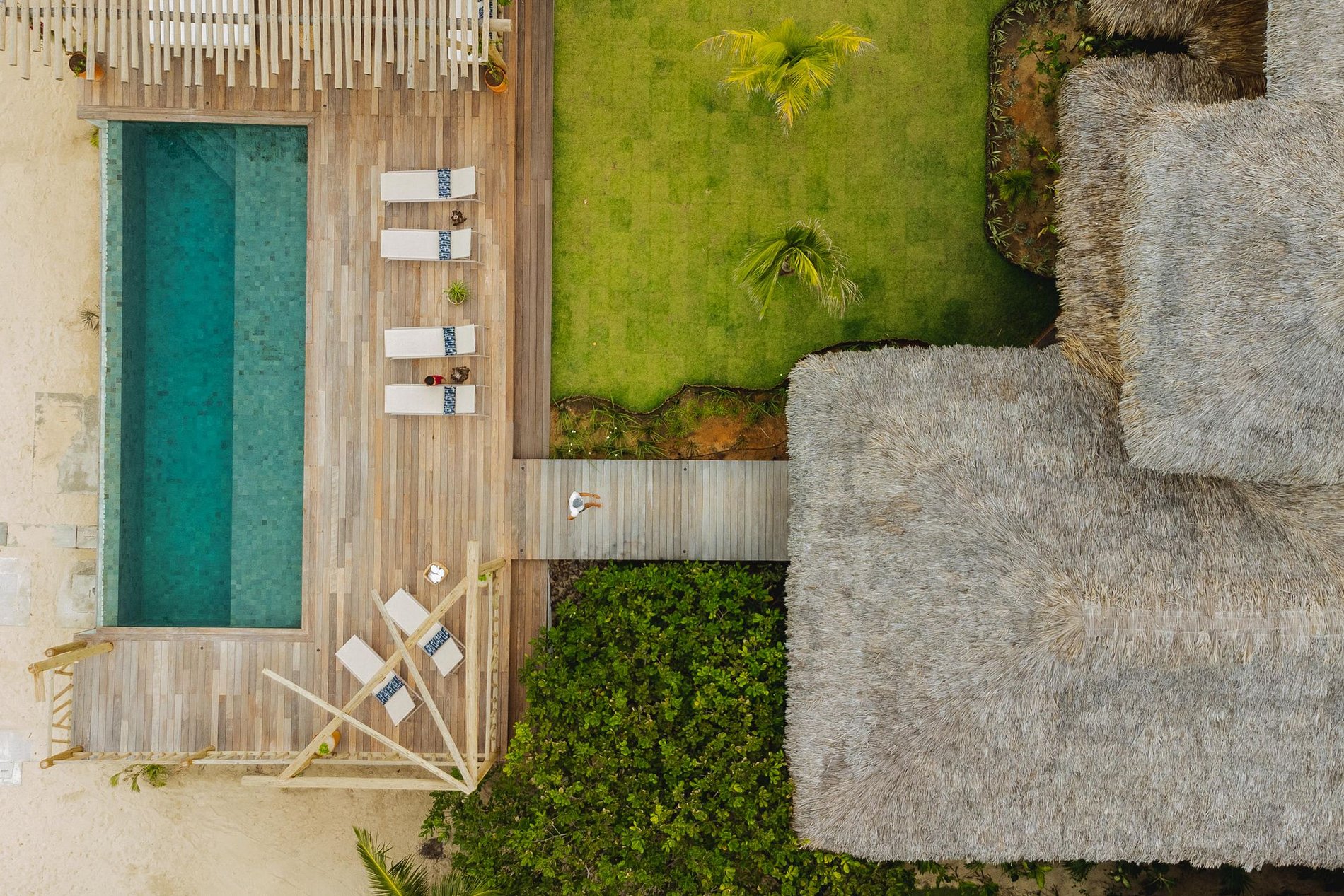 Suites Paradise Deck : Quatre suites au rez-de-chaussée, avec une terrasse privée et un accès direct à la piscine et au jardin, parfaites pour se détendre et se rapprocher de la nature.