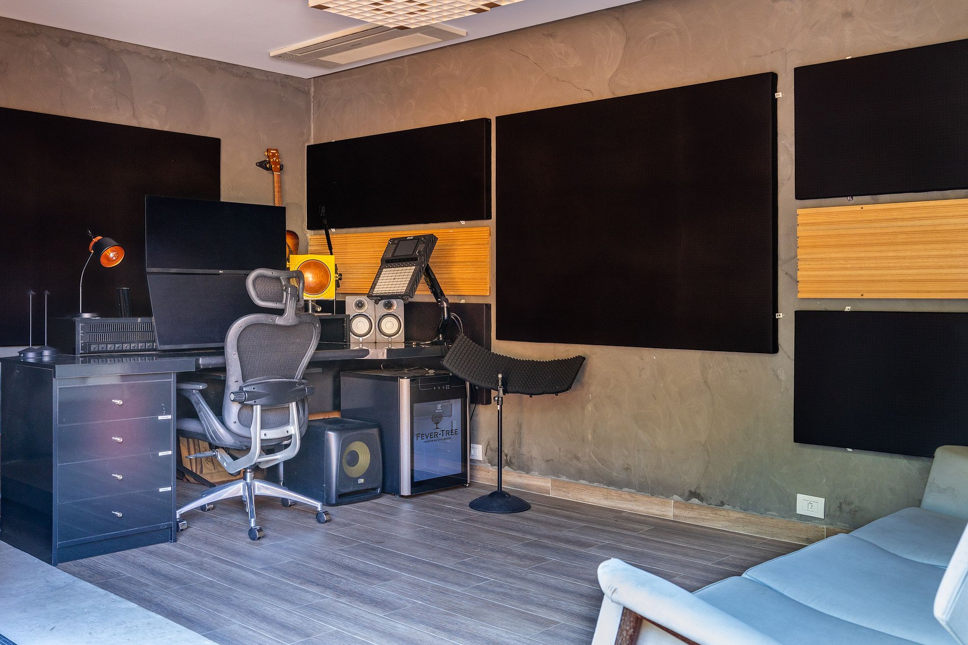 Entourée d'un beau jardin avec piscine, la maison dispose de trois belles suites, d'un jacuzzi, d'une discothèque avec isolation acoustique, d'une sonorisation wi-fi, d'un salon extérieur avec cheminée, d'une cuisine entièrement équipée, d'éclairages domotiques et d'un foyer. théâtre avec un écran de 120 pouces.
