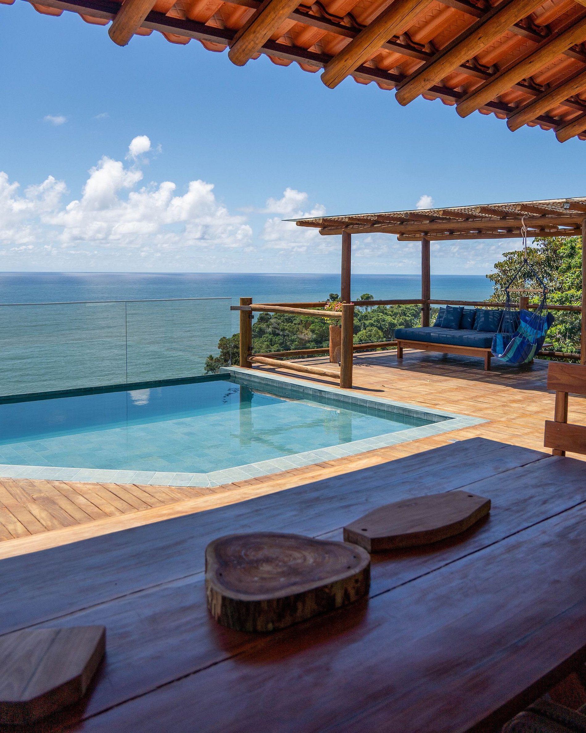 Le point fort est sa vaste véranda, qui vous invite à profiter de réunions inoubliables avec amis et famille. La piscine avec vue panoramique sur l'océan est une invitation à la détente, tandis que l'espace barbecue garantit des moments de convivialité gastronomique en plein air. L'espace dispose également de canapés et fauteuils confortables, parfaits pour admirer le coucher du soleil ou simplement savourer la tranquillité au son des vagues.