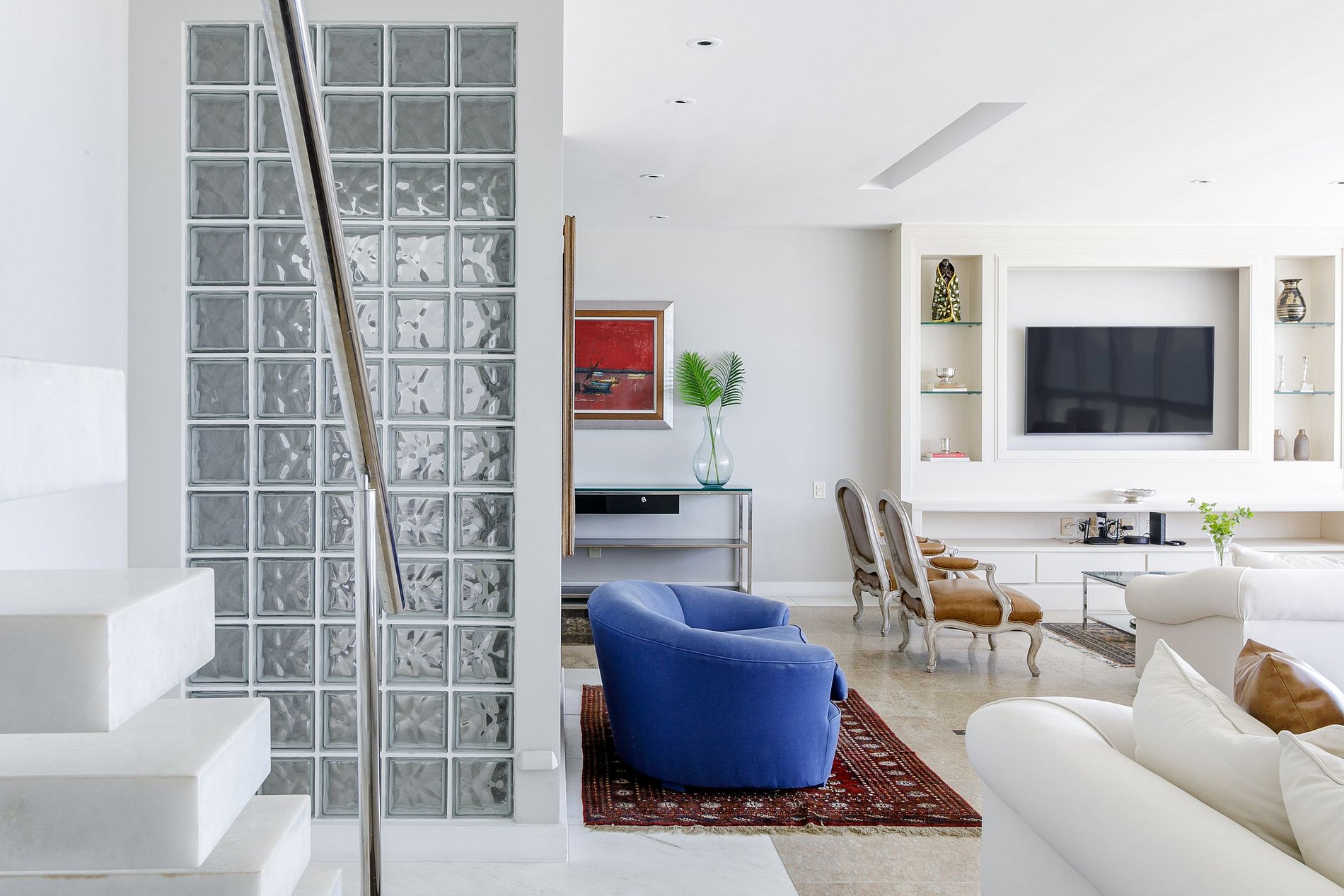 Le premier étage du penthouse est le hall d'entrée qui comprend une grande pièce de trois pièces, dont un salon, une salle à manger et une salle de télévision avec un grand espace pour profiter de films et de séries et dispose d'une connexion Internet haut débit.
