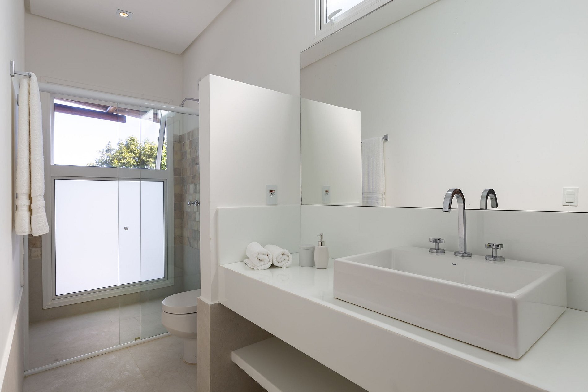 In addition, outside, there are two swimming pools, one with an infinity edge and the other in a reflecting pool. There is also a large glass-enclosed dry sauna overlooking the forest, a massage room with minibar, bathroom, showers and a very Bahian rest area with two hammocks. For those who want to stay active, there is also outdoor gym equipment available.