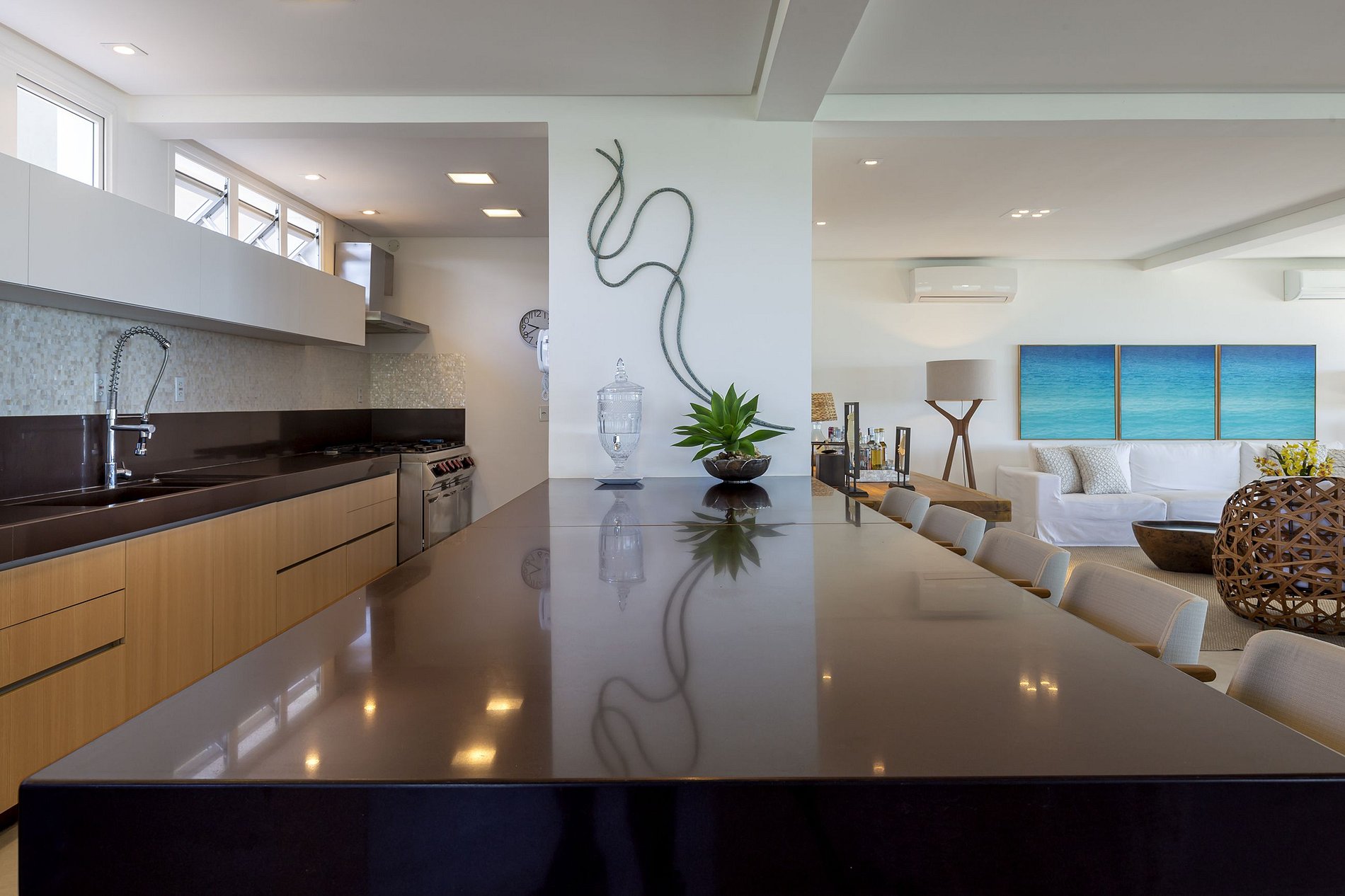 Around here, the fun and the moments of fraternization between the most beloved ones are countless. The gourmet space has a barbecue and pizza oven and everyone can gather around the large table made of native wood for 16 people. The kitchen is equipped with a wine cellar for 96 bottles, a beer cooler, a vertical and horizontal freezer, an industrial stove, two refrigerators, an ice machine and a table set.