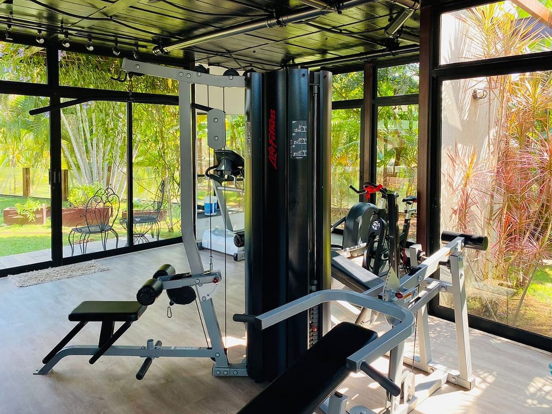 L’espace extérieur gourmet a été conçu pour recevoir famille et amis dans une ambiance raffinée et conviviale, avec un barbecue, une table de billard, une table de ping-pong et une cave à vin rustique et exclusive. Chaque détail de la villa a été pensé pour offrir une expérience inoubliable au cœur de Barra da Tijuca.