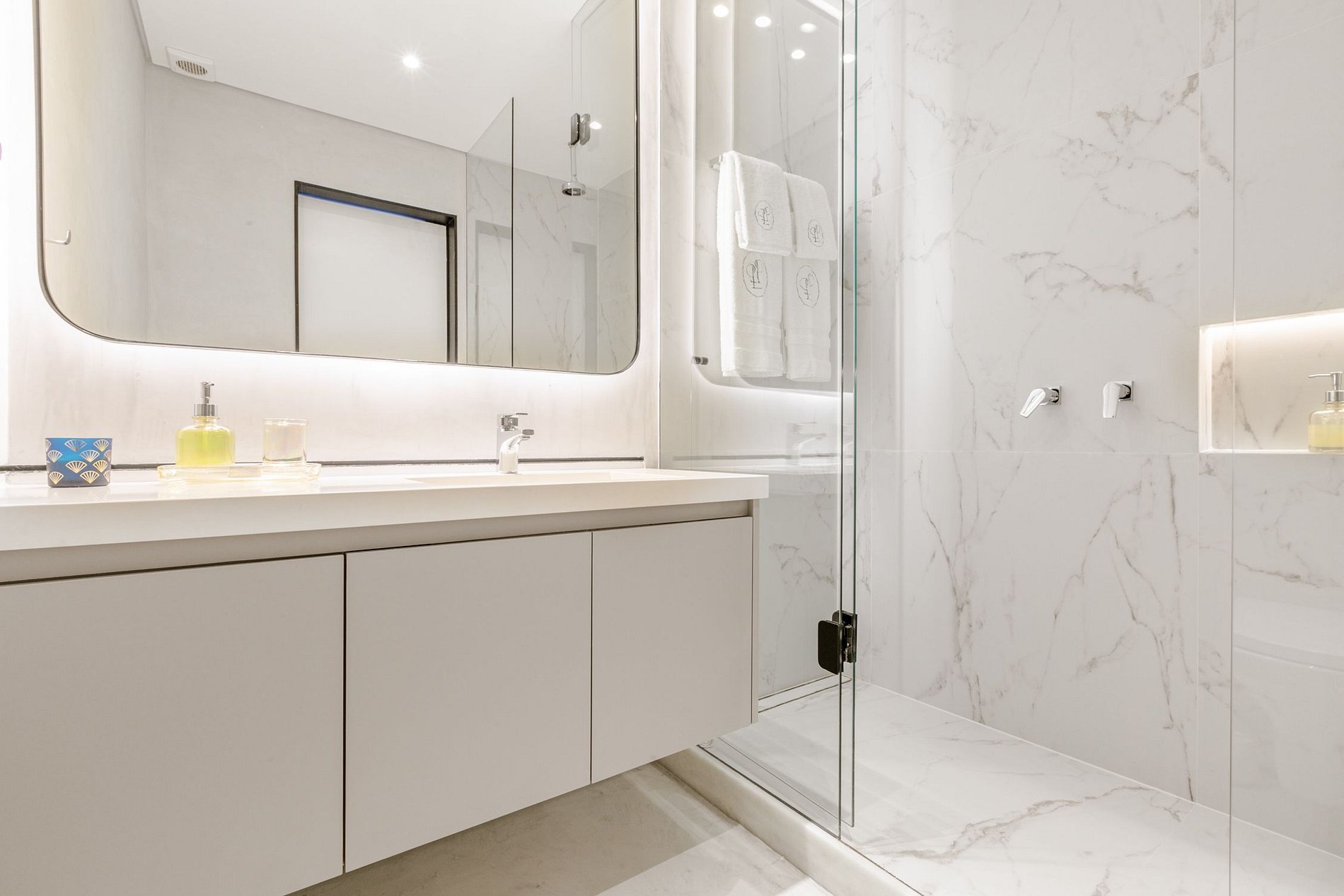 En entrant dans le hall d’entrée, vous découvrez le premier étage, avec son sol en marbre, ses panneaux en bois du sol au plafond et sa décoration élégante qui créent une ambiance harmonieuse, lumineuse et luxueuse. Ce niveau abrite trois magnifiques suites.