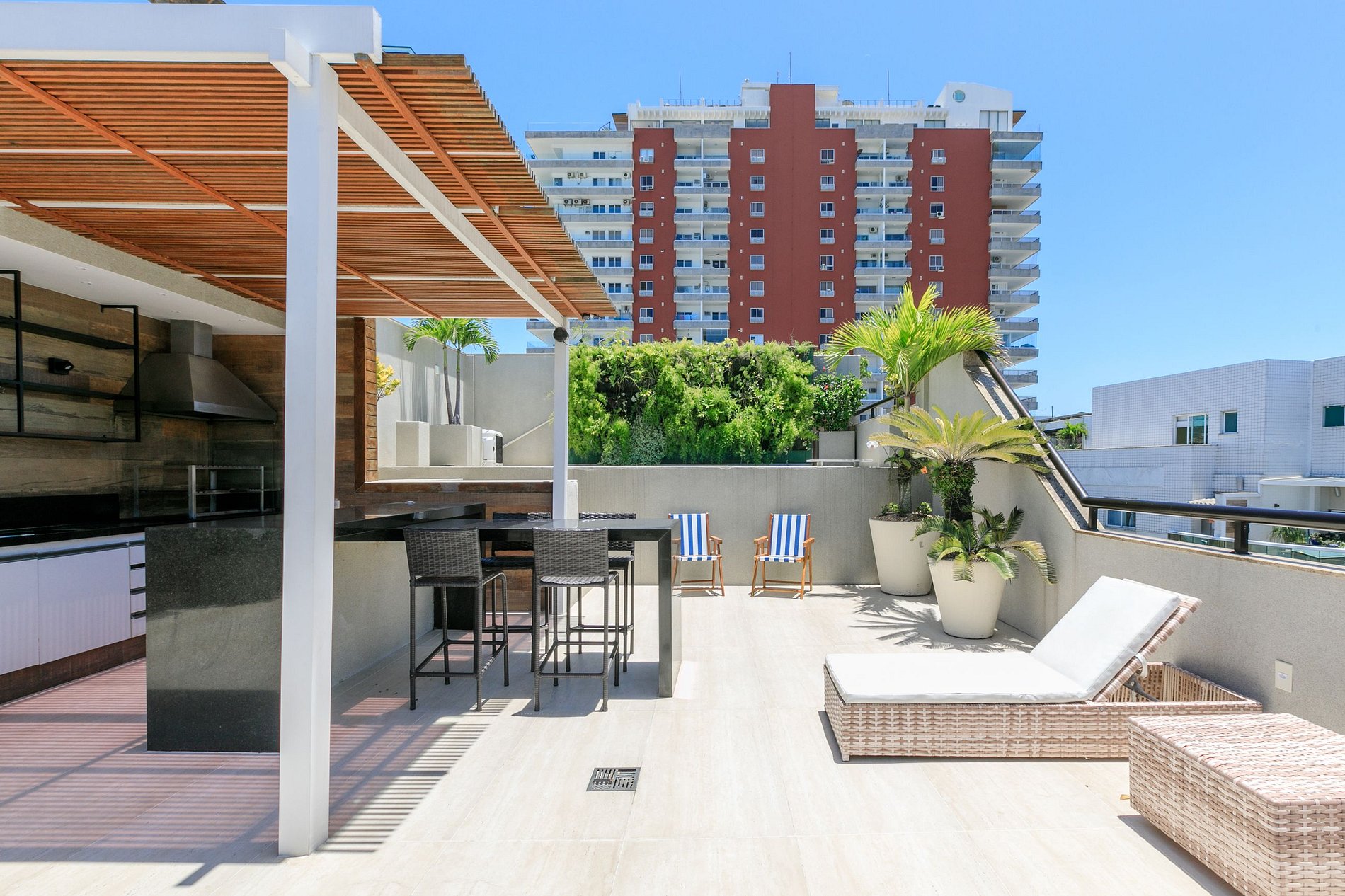 Situé en face des kiosques renommés de Praia da Barra da Tijuca, tels que le Clássico Beach Club et le K8, et à quelques pas de l'Av. Olégario Maciel, où vous trouverez une variété d'options gastronomiques, des bars, des restaurants et des magasins de proximité, tels que des supermarchés, des pharmacies ouvertes 24h/24, des banques et divers magasins.