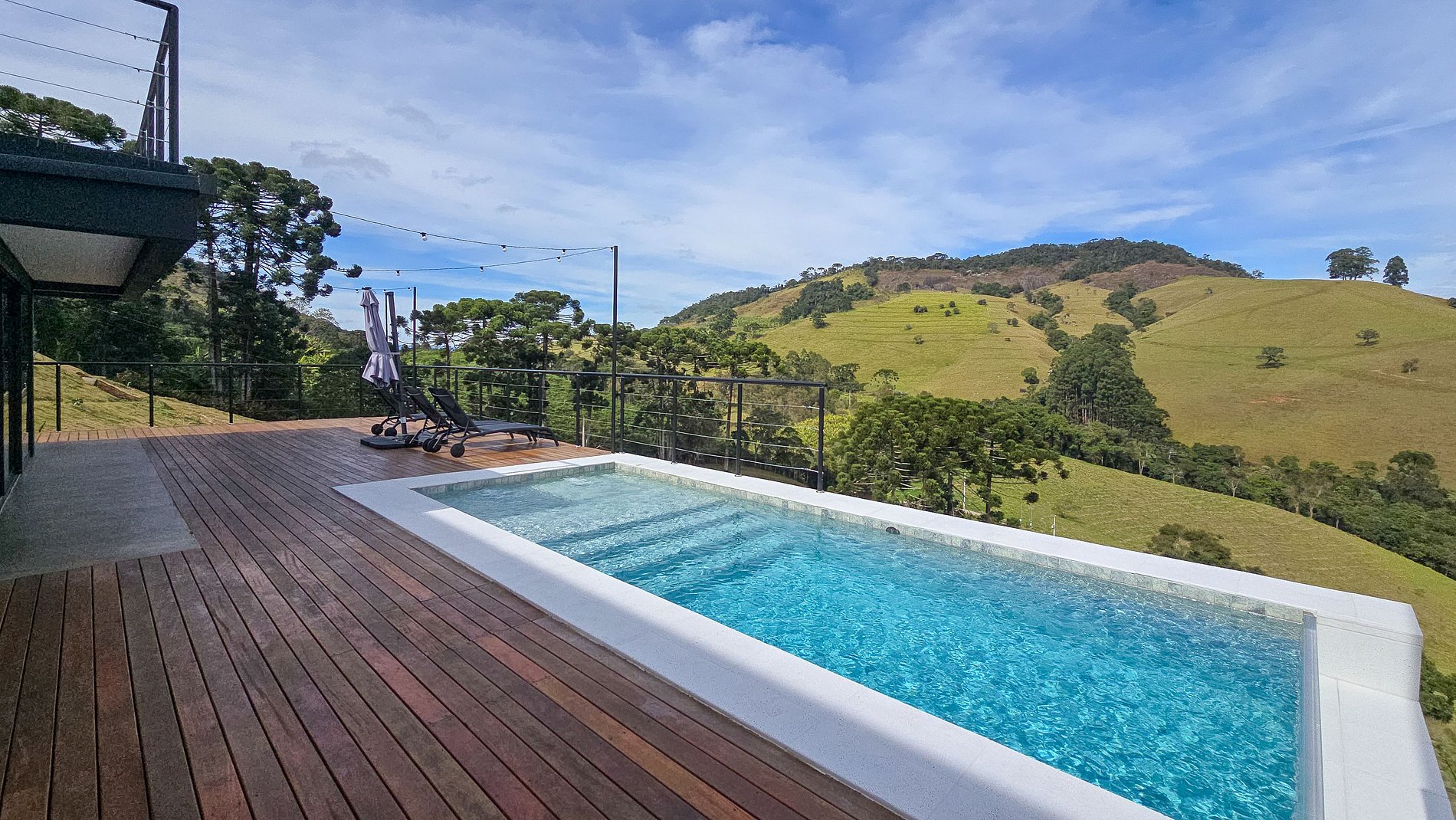 La propriété impressionne dès l'arrivée avec sa vue panoramique à couper le souffle sur les montagnes et vallées de la Mantiqueira. Les intérieurs ont été soigneusement conçus, avec un sol chauffant, une cheminée chaleureuse et un jacuzzi offrant une vue imprenable. La piscine chauffée et le sauna complètent ce cadre de détente absolue, tandis que l'espace barbecue spacieux invite à des moments gastronomiques en plein air.