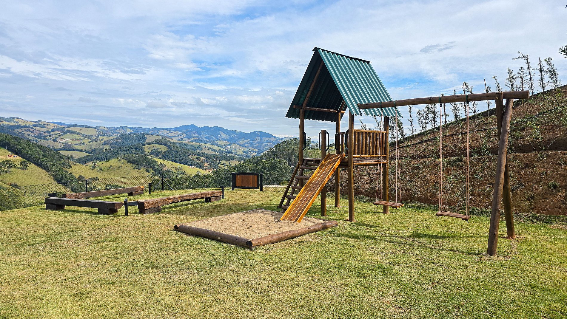 Parfait pour les familles avec enfants, l'espace dispose d'une aire de jeux privée, garantissant amusement pour les plus petits pendant que les adultes profitent du meilleur de l'hébergement de luxe à Gonçalves. Les chalets intégrés à la maison principale assurent une intimité et un confort supplémentaires, créant une atmosphère de maison de campagne avec une touche contemporaine.
