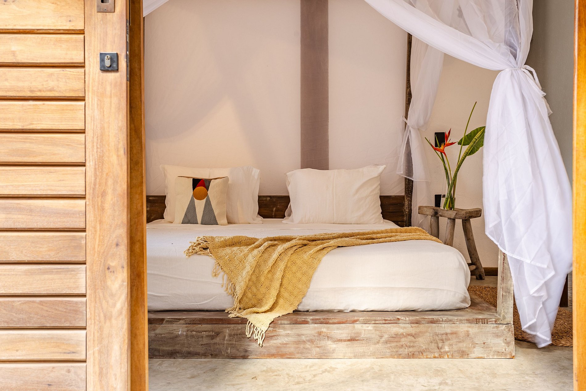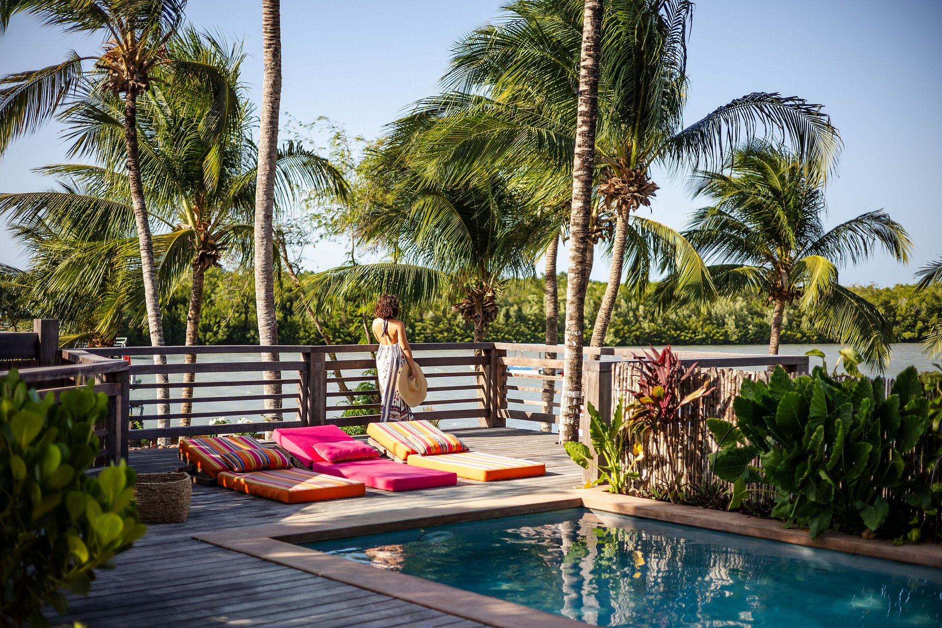 Elle propose trois suites indépendantes, spacieuses et décorées avec des œuvres d’artisans locaux, lits confortables, climatisation et salle de bains privée. Certaines disposent d’un deck avec baignoire extérieure ; d’autres offrent une vue sur le jardin ou sur le delta. Les espaces communs sont ouverts sur l’extérieur : salon pieds dans le sable, cuisine intégrée et piscine à débordement avec vue panoramique sur le coucher du soleil. L’ensemble a été conçu pour respirer, avec ventilation naturelle et atmosphère chaleureuse.