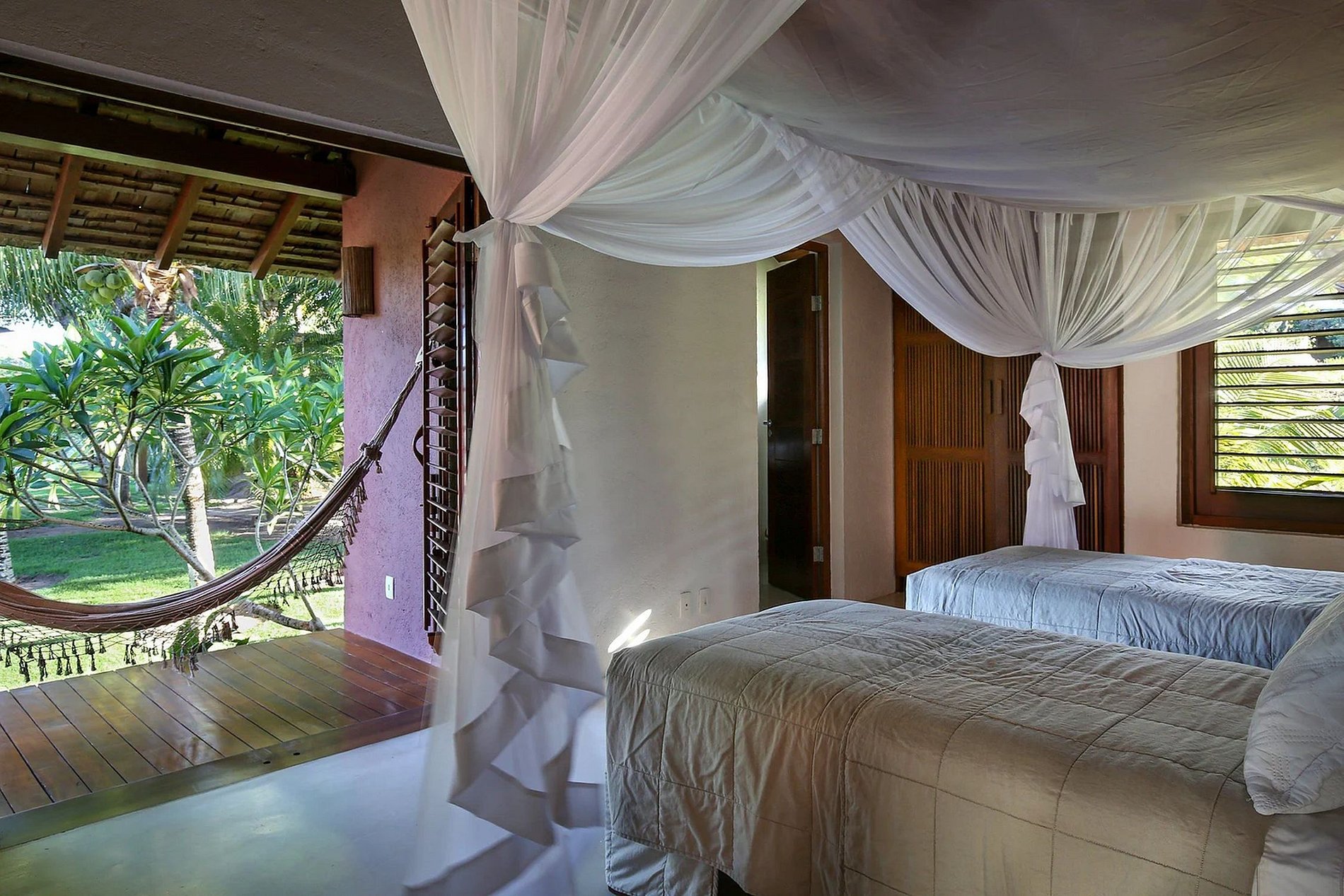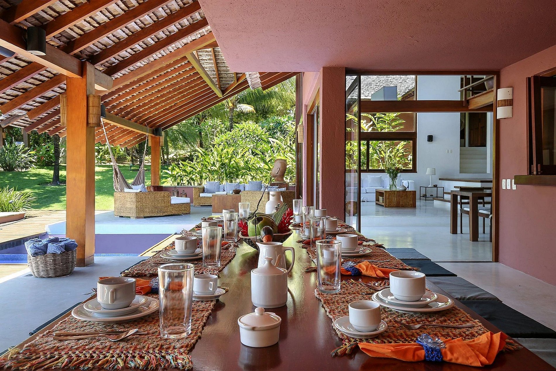 All’esterno, gli ospiti possono rilassarsi in una splendida piscina, usufruire della zona barbecue e godere di un giardino pittoresco dove il canto degli uccelli della foresta crea un’atmosfera serena e rilassante per tutta la vacanza. A pochi minuti si trovano le spettacolari spiagge di Trancoso, come Praia Rio da Barra e la famosa Praia dos Nativos, perfette per giornate al sole e in acque cristalline.