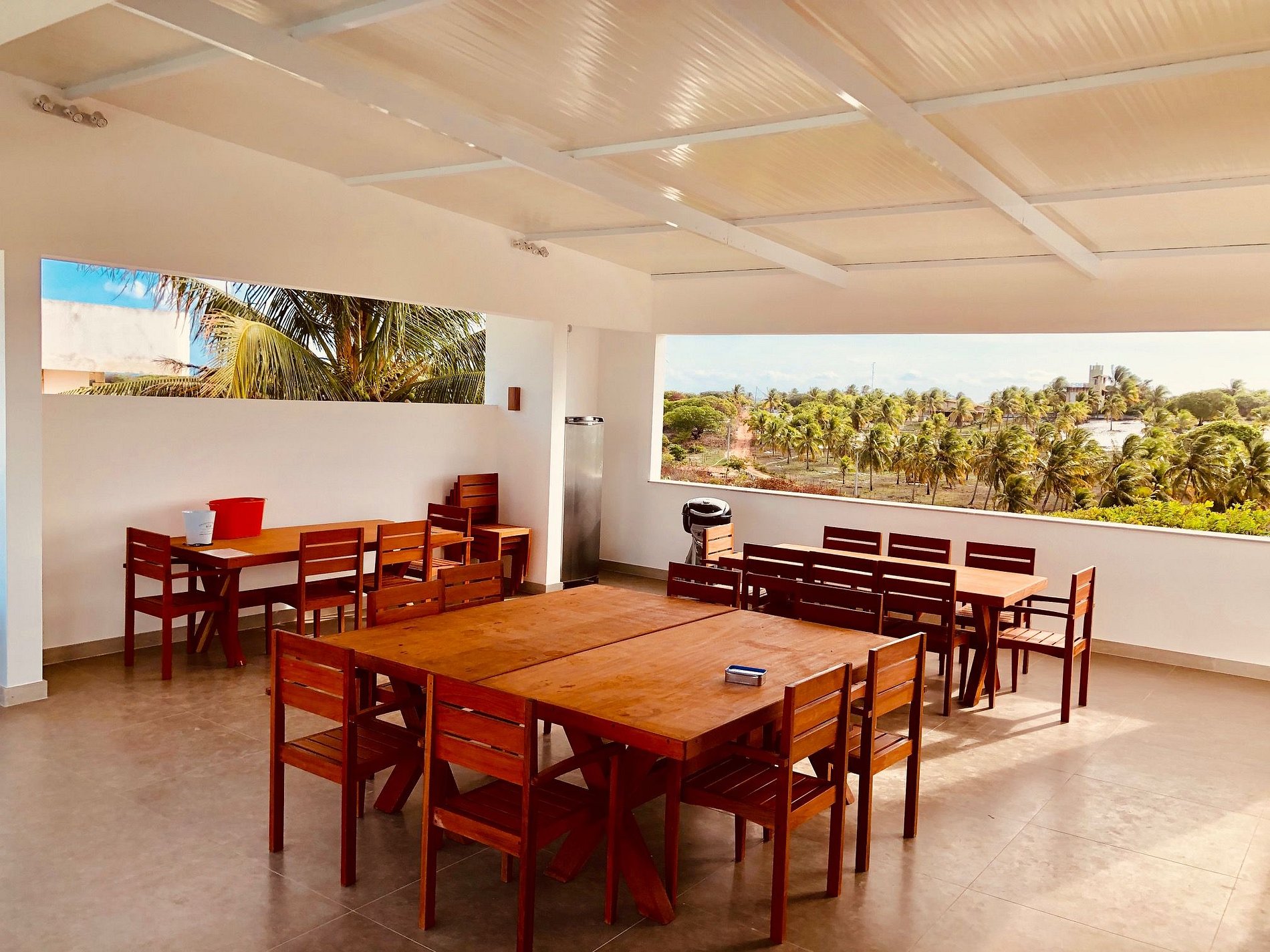 Live the paradise experience in one of Pipa’s most beautiful villas, located just 100 meters from Sibaúma Beach, famous for its sea turtles. The entrance welcomes you with a lush tropical garden filled with palm trees and exotic plants, surrounding the spectacular 20-meter private swimming pool, with four meters forming a shallow “beach area.” With a width of four meters and a depth of 1.40 m, it is the largest private pool in Pipa. Around the pool, twelve wooden sun loungers with plush cushions, large umbrellas, and side tables ensure perfect moments under the sun. Starting in October 2025, the villa will feature a brand new 35 m² covered outdoor gourmet kitchen made of eucalyptus wood, fully equipped with a barbecue, refrigerator, tables, and benches, ideal for open-air lunches and dinners. In the garden, a cozy wooden canopy bed for three, with mattresses and pillows, invites you to unwind. There is also an outdoor shower and a full bathroom with a toilet available for guests. From the garden, a wide, sunlit staircase leads to the four ground-floor suites, arranged two on each side, all with access to a 70 m² covered veranda equipped with colorful hammocks. Each suite features air conditioning, a flat-screen TV, a king-size bed, LED-lit furniture, a closet, headboard, side tables, reading lamps, double curtains, and mosquito nets. The private bathrooms come with towels, soap, shampoo, and a hairdryer. Through the covered inner garden, guests reach the upper floor and the magnificent 85 m² veranda, furnished with four modular tables measuring two by one meter each, 24 chairs, sofas, coffee tables, and a sink. It is the perfect setting to enjoy the sunset or toast with a good drink. The view is breathtaking: on one side, the sea and the pool, and on the other, an endless field of palm trees stretching as far as the eye can see. The spacious kitchen, fully equipped with a refrigerator, stove, blender, toaster, coffee maker, and other utensils, connects seamlessly to a bright living room with large glass windows, a flat-screen TV, and comfortable sofa beds. The master suite, located upstairs, offers even more comfort with a large bathroom featuring double sinks, a walk-in closet, and a fully private open-air shower. Its nine-square-meter private balcony, furnished with armchairs, connects to the main veranda through an external walkway. The house lighting has been carefully designed to create a unique and memorable atmosphere at night. Built in 2019, the property sits on a 1,000 m² plot and is maintained in impeccable condition. This villa has already hosted celebrities and athletes such as Aline Gotschalg and Fernando Medeiros from Big Brother Brasil, soccer player Ayrton Lucas from Spartak Moscow, and Nahirza Ferreira, Miss Natal, among others. To make your stay even more enjoyable, guests can hire a private chef and assistant to handle all meal preparation, grocery shopping, and drinks, including freshly made caipirinhas.