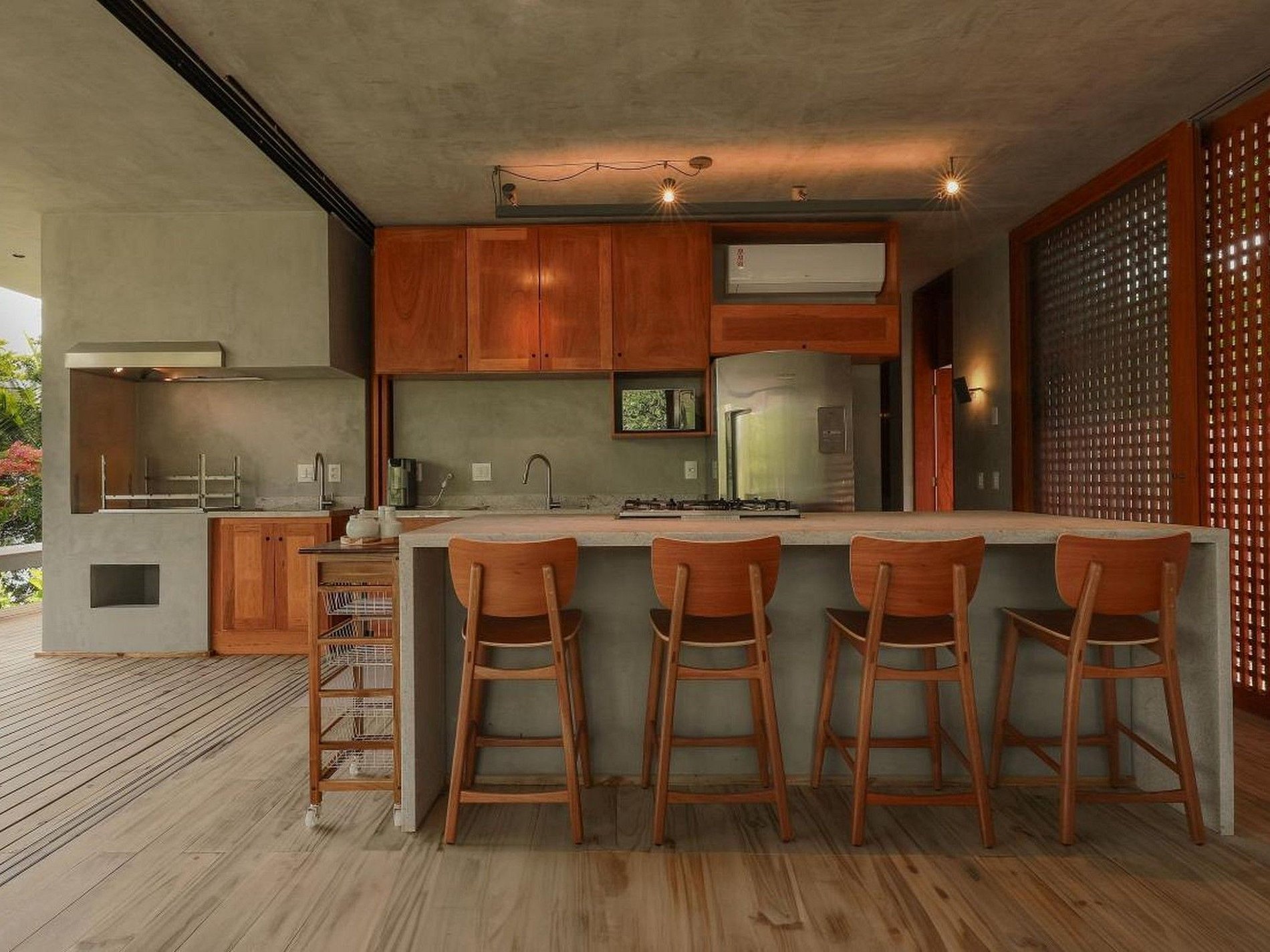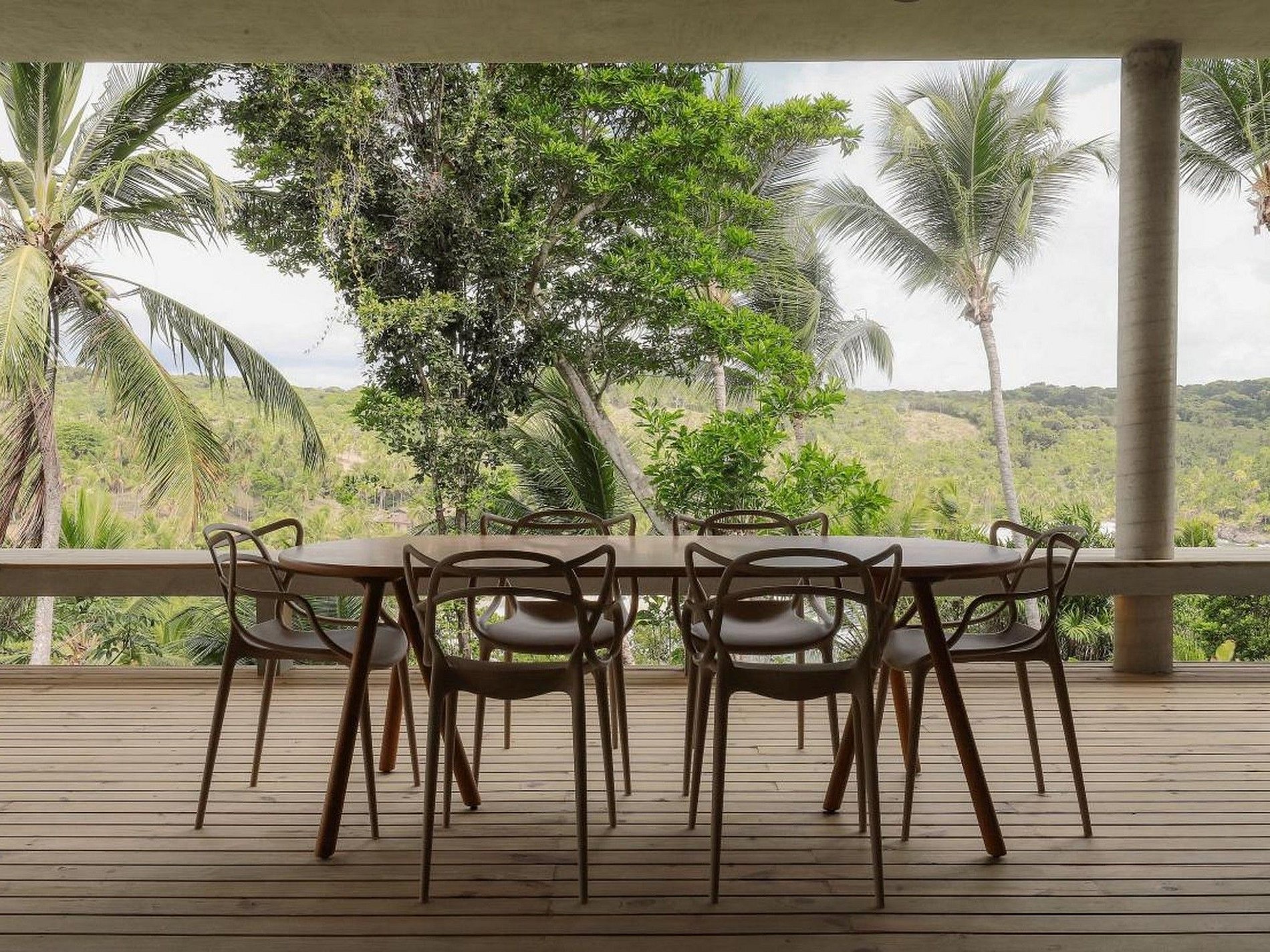 Il punto forte della casa è la bellissima piscina con vista panoramica, perfetta per rinfrescarsi mentre si ammira il tramonto. Intorno ad essa, comodi lettini invitano a rilassarsi sotto il sole bahiano.