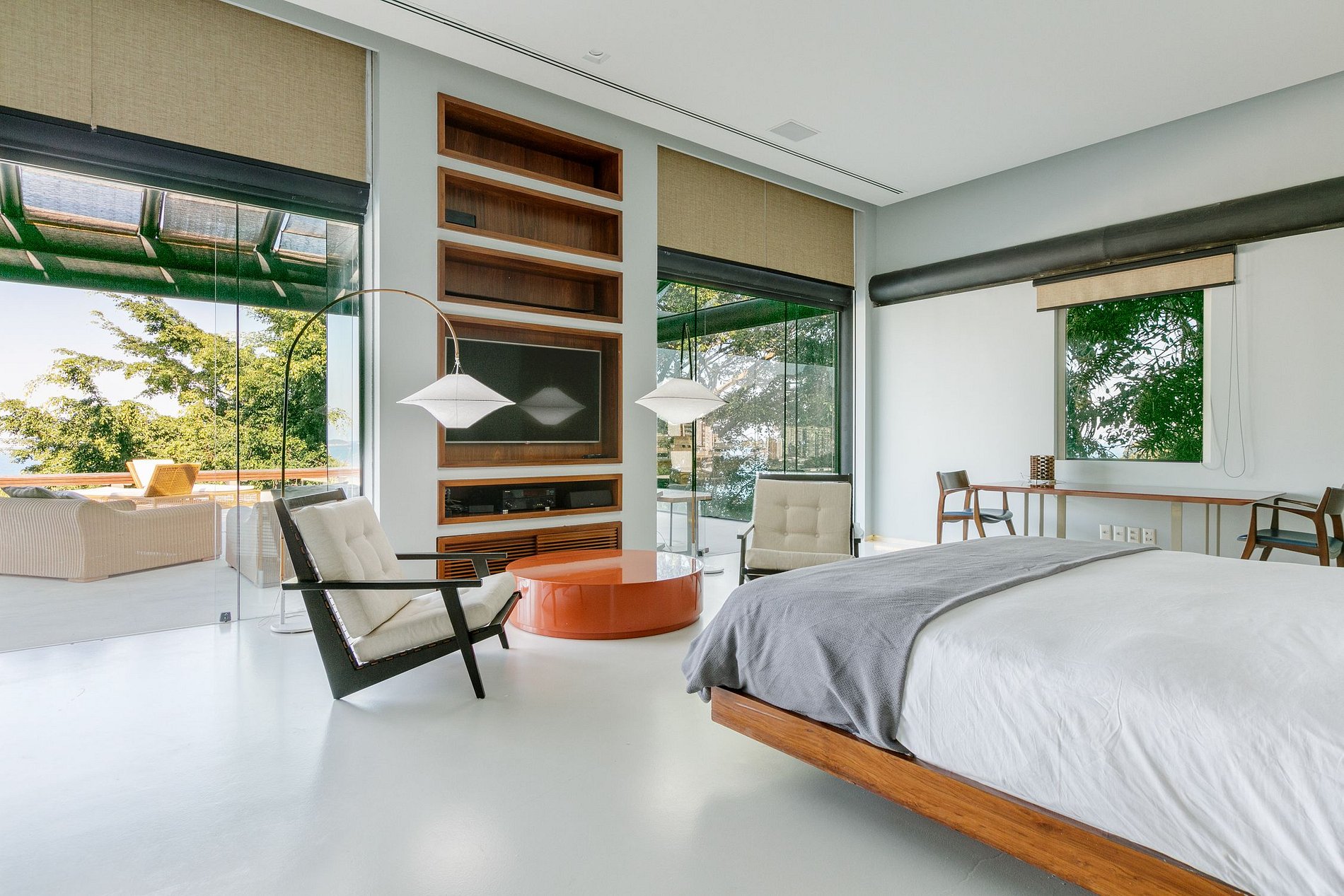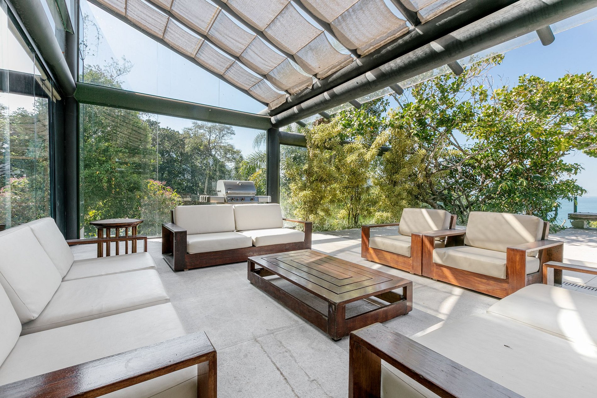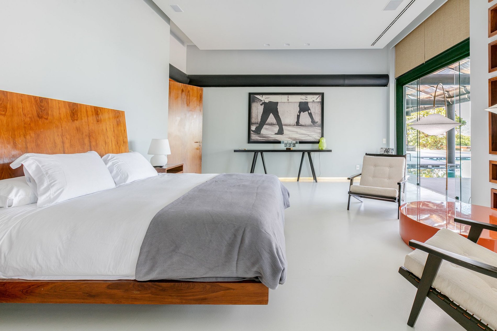All'interno di un condominio chiuso, in un'area costruita di 900 m2, troviamo questa straordinaria dimora che si affaccia su Pedra da Gávea e sulla spiaggia di São Conrado, da dove è possibile ammirare, come in una cabina, gli amanti dello sport del deltaplano in piena attività.