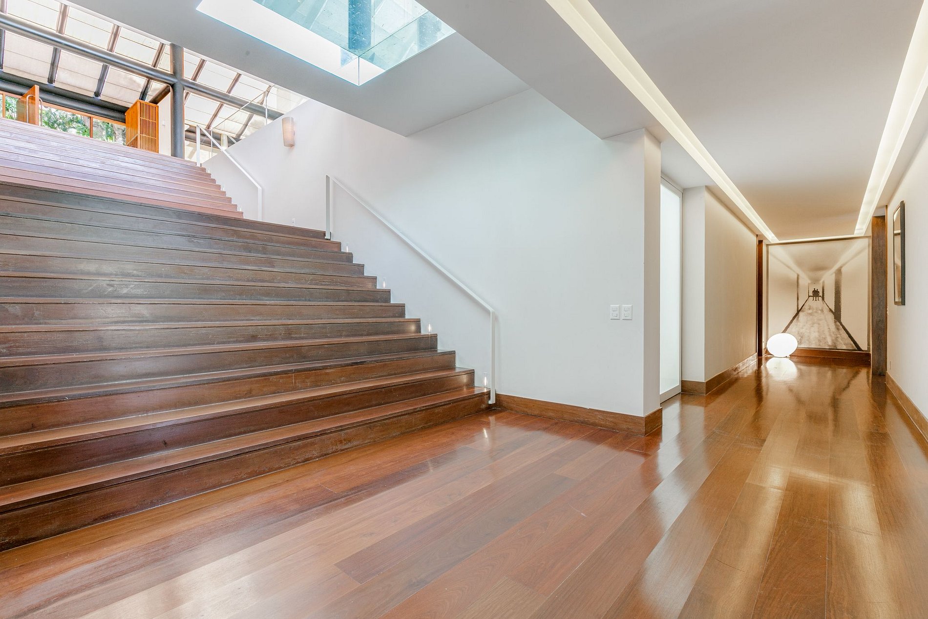 Non mancano infatti le opere d'arte a comporre il bellissimo progetto di interior design che conferiscono un fascino moderno agli immensi ambienti interni unito a molta luce naturale. Tutta questa modernità si traduce anche, ad esempio, nell'impianto audio integrato che corre in tutta la proprietà e può essere collegato tramite bluetooth.