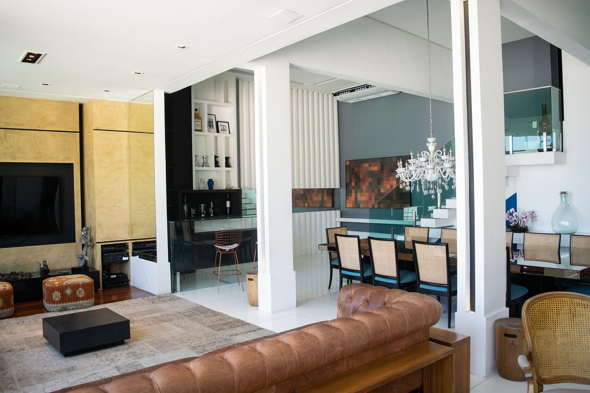 L'indirizzo ha i suoi quattro piani collegati tramite ascensore. Al primo piano abbiamo il garage, con tre posti interni e qualche altro spazio esterno. Salendo al secondo piano, una stanza ampia e curata con soffitti alti. La TV da 75 pollici, l'Apple TV, il caminetto e il minibar portano comodità nei momenti di relax al chiuso. Il tavolo da pranzo da 12 posti è ideale per riunire la famiglia e gli amici e fraternizzare. Accanto ad essa si trova un'ampia cucina perfettamente attrezzata.