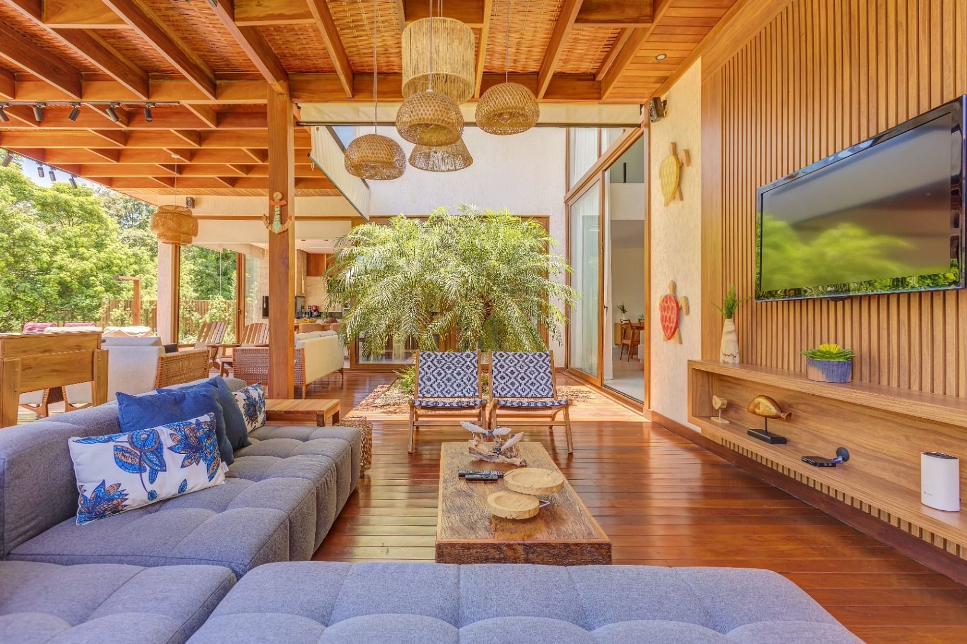 Immagina una splendida casa a Praia do Forte, Bahia, situata in un'esclusiva comunità recintata. Questa residenza unisce lusso e comfort in perfetta armonia tropicale. Con un'architettura contemporanea che si integra con il lussureggiante paesaggio della regione, la casa dispone di cinque spaziose suite, ognuna arredata con eleganza e dotata di tutti i comfort moderni.