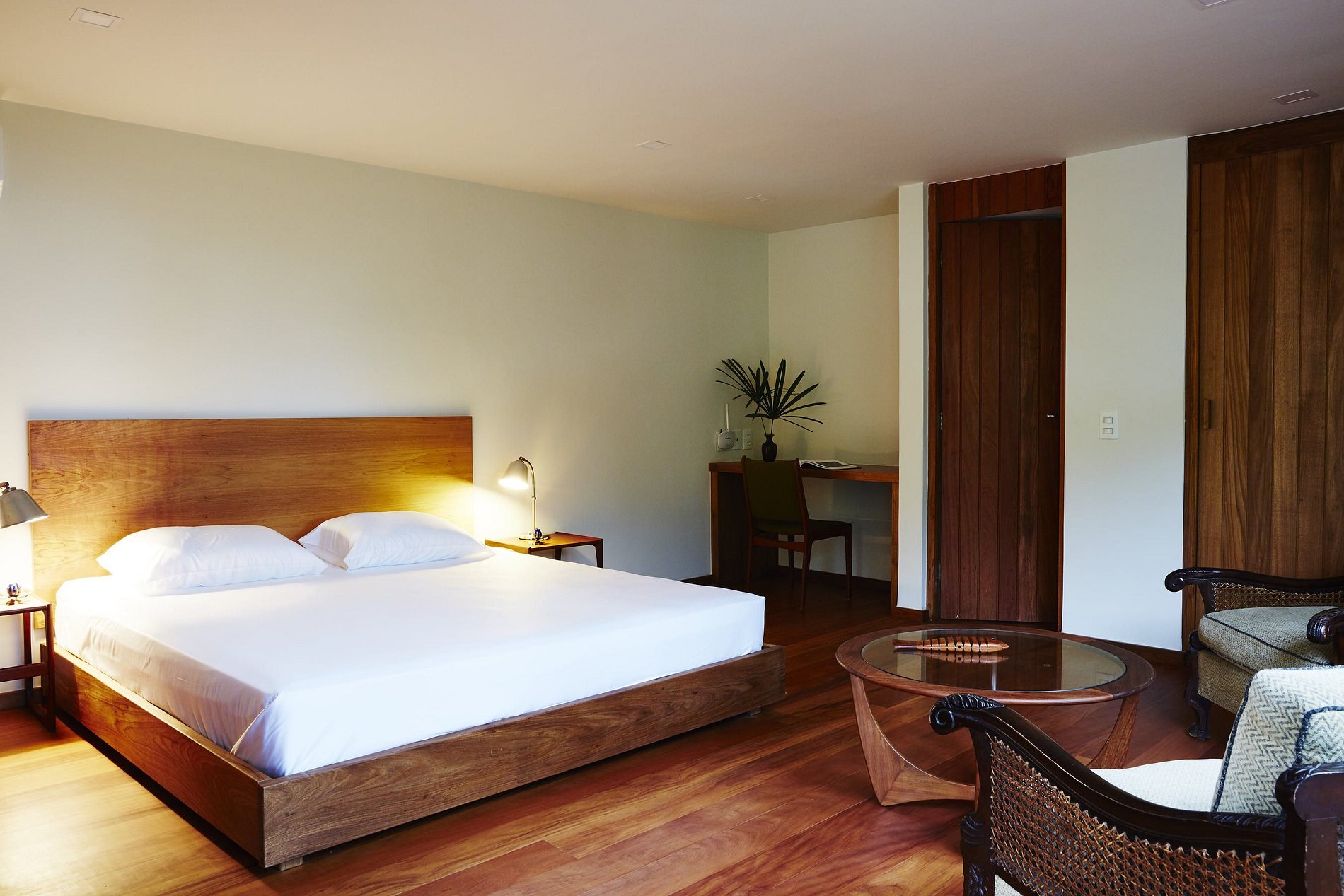 Il design della casa è assolutamente unico. Con i suoi grandi archi, il soggiorno con le sue grandi vetrate, il patio con pergolato a volta e le sue porte in legno alte sei metri, divenne noto per il suo stile modernista brutalista che mescolava cemento e legni nobili. Nell'arredamento, dettagli che fanno la differenza, come tessuti fatti a mano, sedute in bambù e cuscini raccolti dalla Thailandia all'Europa.